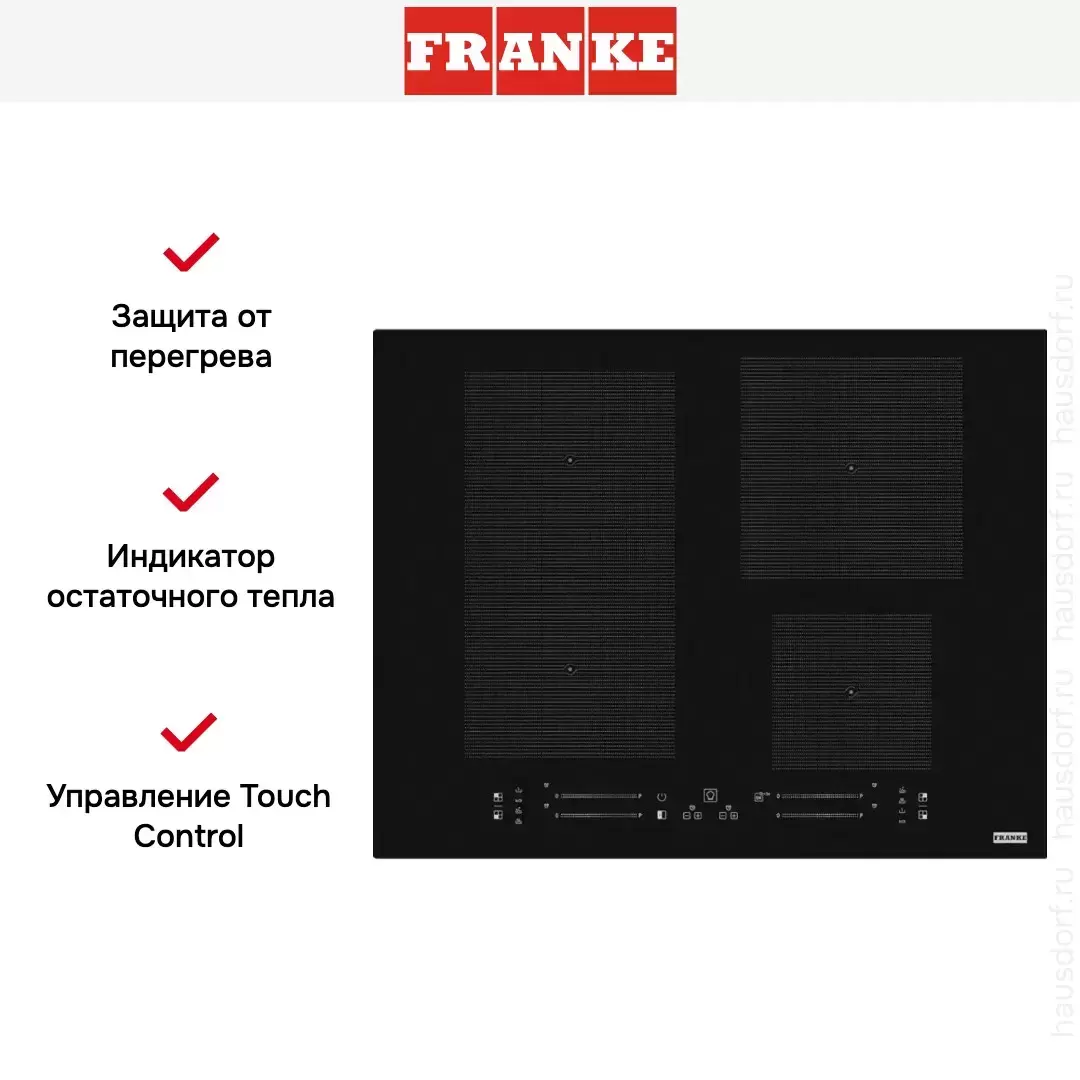 Модель Франке FMA 654 I F BK входит в дизайн-линейку: Maris. Цвет — черное стекло. Материал самой поверхности: стеклокерамика. Управление этой моделью электронное. Для переключения уровней нагрева, выбора функций используются следующие переключатели: сенсорные/TouchControl, сенсорный слайдер/TouchSlider. Продвинутая система контроля за прибором делают его современным и отвечающим на главные запросы покупателя.