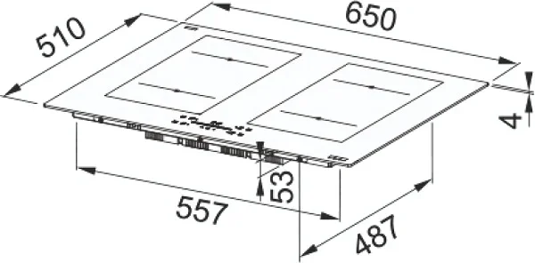 Панель выполнена в изысканном дизайне Maris в глубоком чёрном цвете и безрамочном исполнении, что придаёт ей эффект парящей поверхности и позволяет легко вписать её в любую кухонную композицию. Габариты устройства — 5,7×65×51 см — соответствуют стандартам для широких моделей, а для встраивания требуется ниша размером 55,7×48,7 см, что обеспечивает плотную и аккуратную установку.