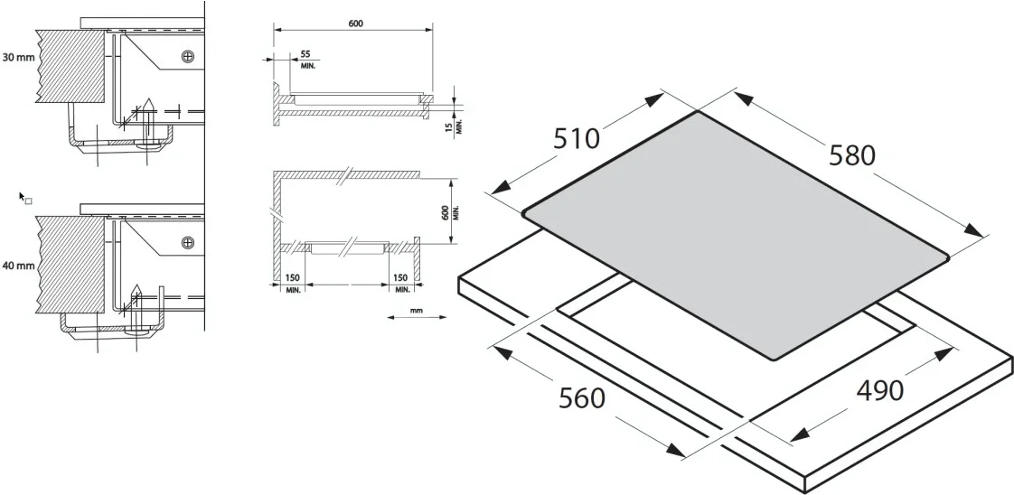 Панель подключается к стандартной электросети и не требует дополнительных коммуникаций, что упрощает монтаж. Её гладкая поверхность легко очищается от загрязнений, а отсутствие выступающих элементов и рамок предотвращает скопление жира и остатков пищи по краям.