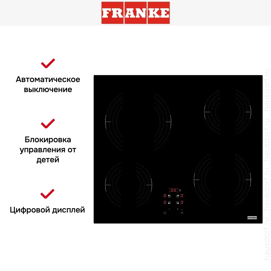 Варочная панель Franke FRSM 604 CT BK — современное решение для кухонь, где важны эстетика, функциональность и передовые технологии. Это независимая электрическая модель с гладкой стеклокерамической поверхностью чёрного цвета и безрамочным дизайном Smart, который придаёт ей лаконичный, почти парящий вид. Благодаря минимальным габаритам — всего 5 см в высоту при ширине 58 см и глубине 51 см — панель легко встраивается в стандартную нишу размером 56×49 см, гармонично дополняя любую кухонную мебель.