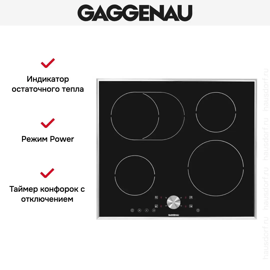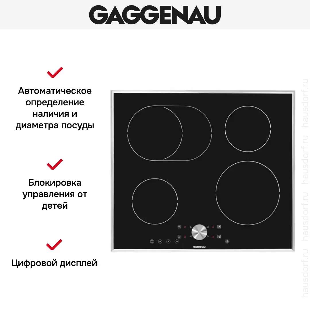 На вид электрическая варочная поверхность Gaggenau CI 261-112 не отличается особой помпезностью: строгий черный цвет стеклокерамического покрытия, серебристая окантовка, стандартные размеры. А удобные 4 индукционные конфорки, в том числе с овальной зоной нагрева, современное сенсорное переключение и защита от детей обеспечат безопасное и удобное приготовление еды.