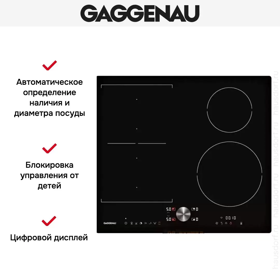 Варочная панель Gaggenau CI 262-101 оснащена функцией поддержания тепла, которая позволяет не только сохранять высокую температуру блюд и посуды, но и растапливать шоколад и сливочное масло. Автоматические распознавание посуды обеспечивает комфорт эксплуатации.