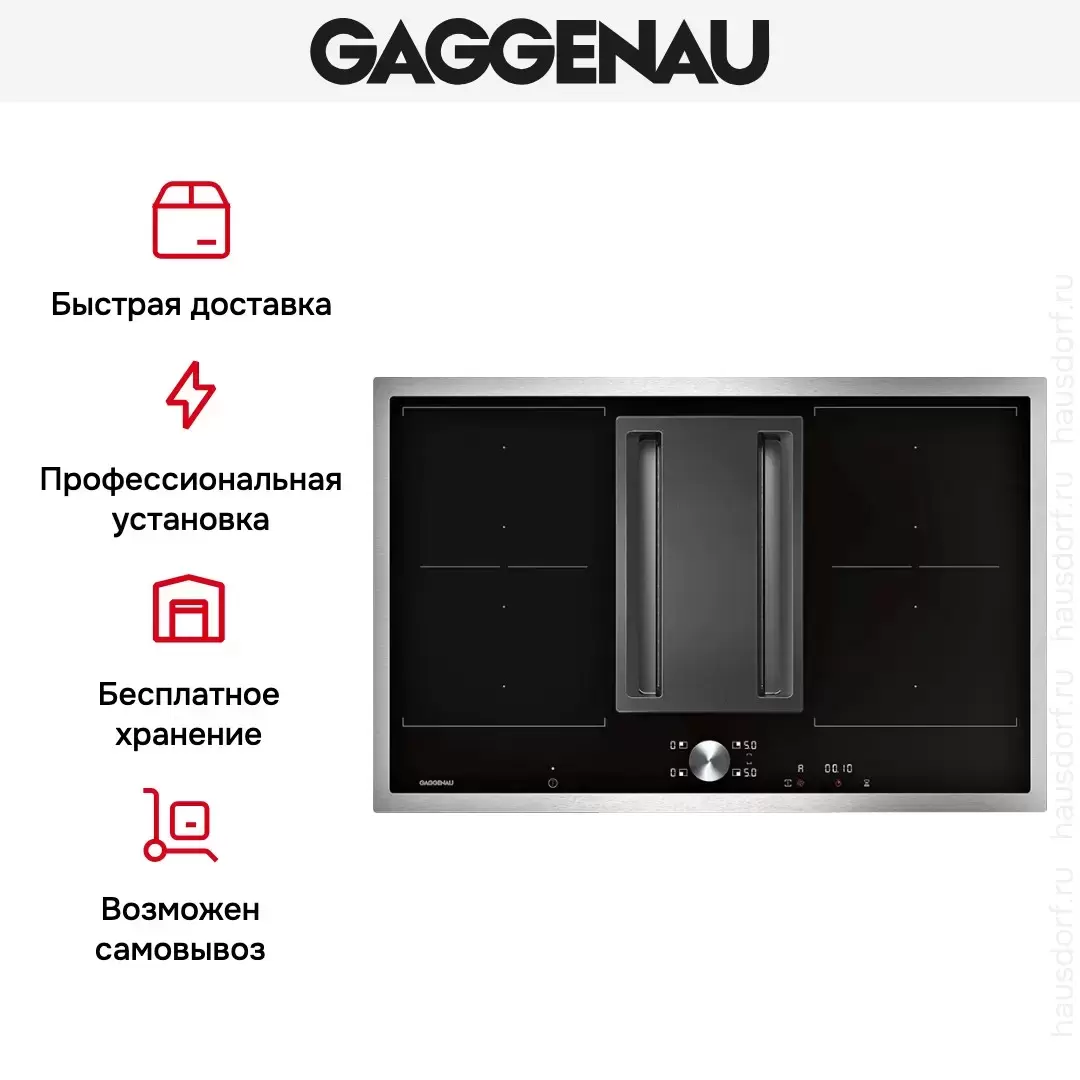 Варочная панель Gaggenau CV 282-110 оборудована встроенной вытяжкой, которая включается автоматически при работе любой их конфорок. Панель управления Twist-Pad со съемным магнитным переключателем удобна в использовании и гарантирует безопасность эксплуатации.