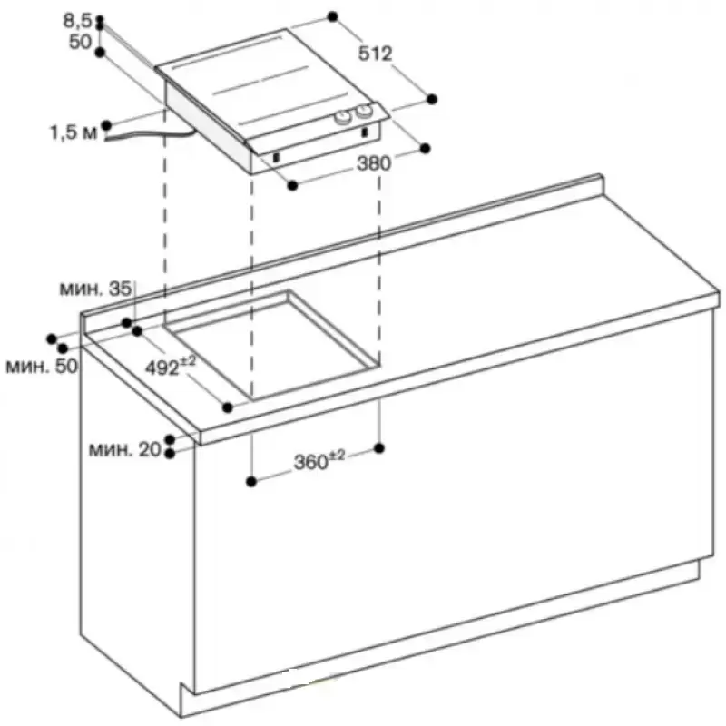 • Устанавливается на столешницу