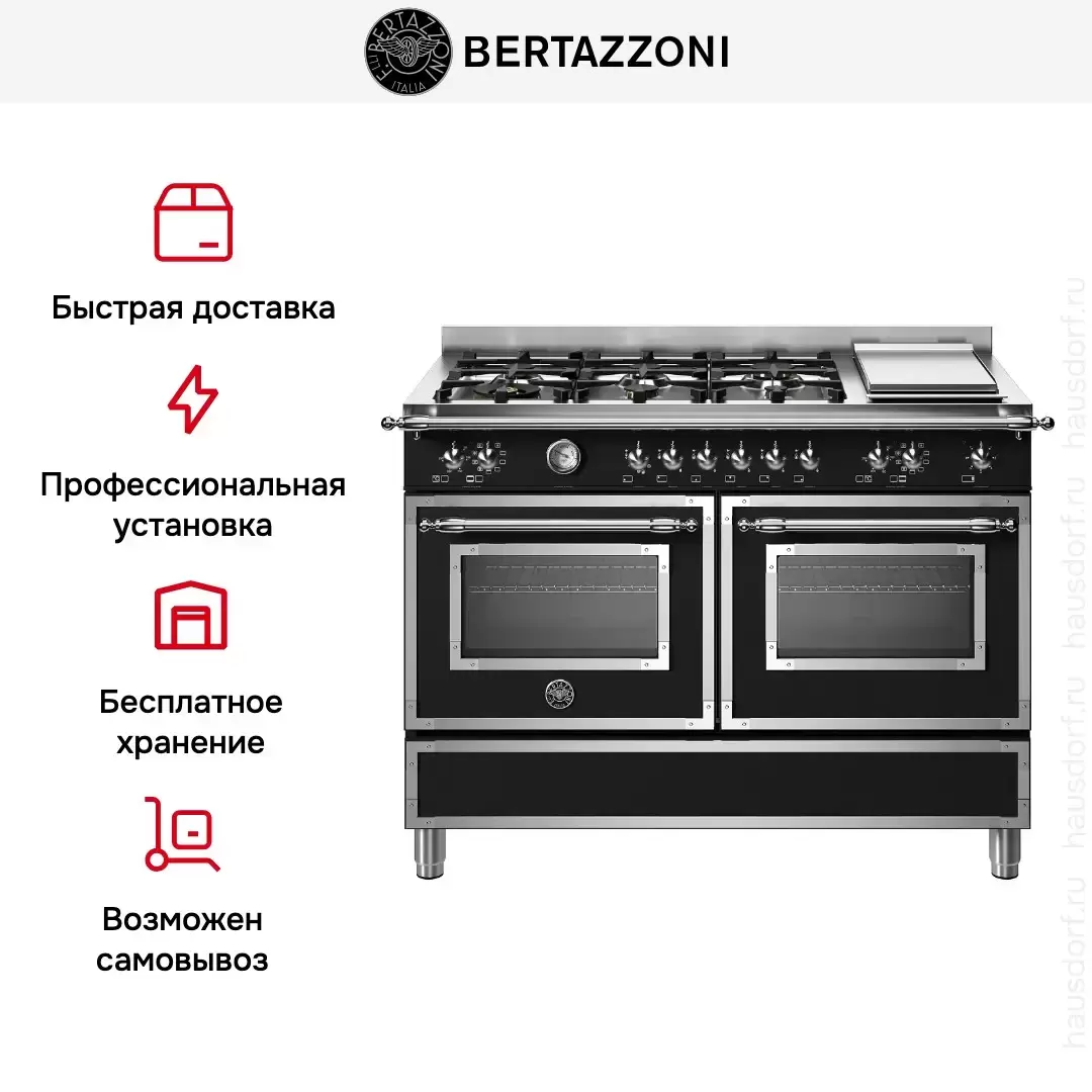Комбинированный варочный центр Bertazzoni HER126G2ENET оснащен газовой варочной поверхностью и двойным электрическим духовым шкафом. Газовая панель из нержавеющей стали оборудована 6 конфорками, одна из которых имеет два контура. WOK конфорка предназначена для ускоренного разогрева, использования посуды с круглым дном и приготовления блюд в азиатском стиле. Теппан зона нагрева позволит готовить без использования посуды.