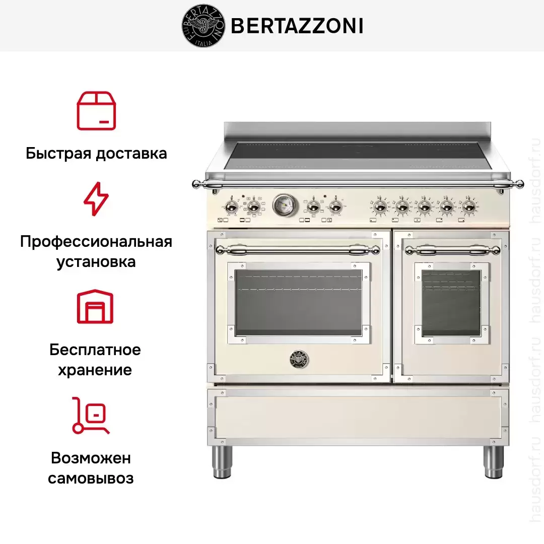 Электрический варочный центр Bertazzoni HER95I2EAVT оснащен индукционной варочной поверхностью и электрическим духовым шкафом. Индукционная панель из стеклокерамики оборудована 5 конфорками и обеспечивает быстрый, равномерный прогрев дна посуды, благодаря функции Booster мощность одной из них можно увеличить. Каждая зона нагрева имеет 9 уровней мощности и дополнена датчиками остаточного тепла.