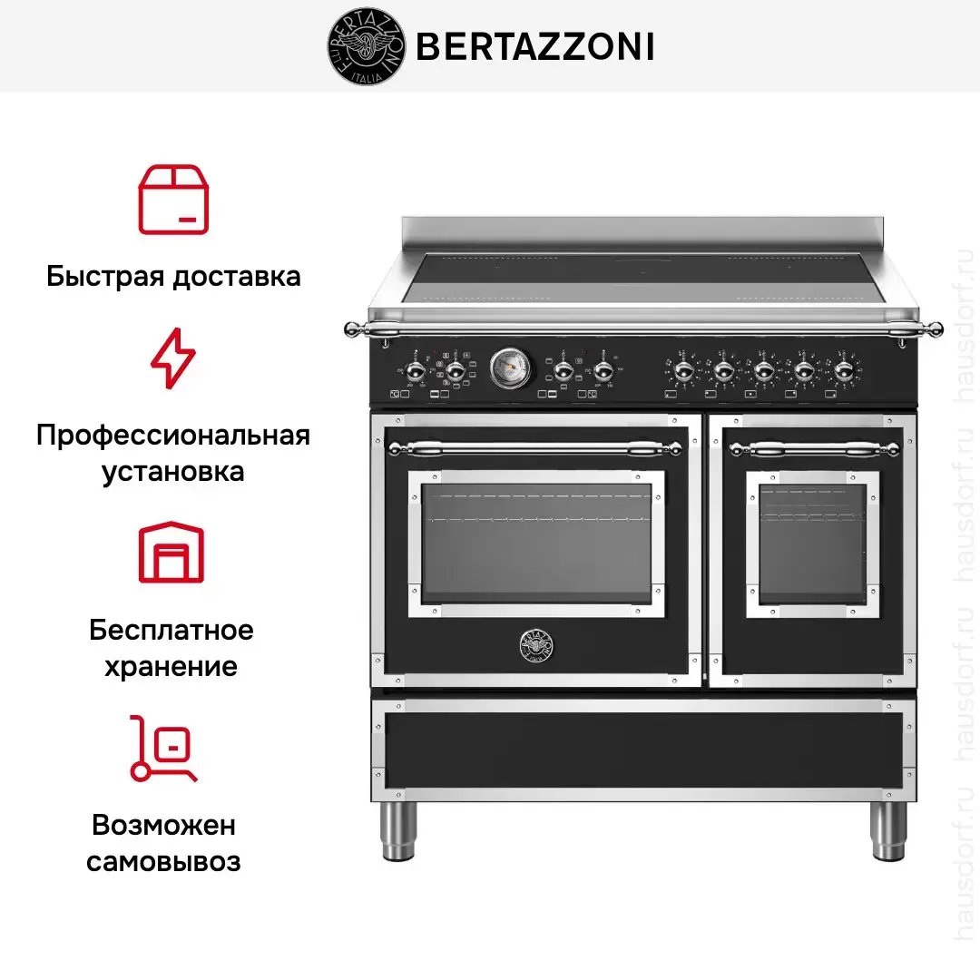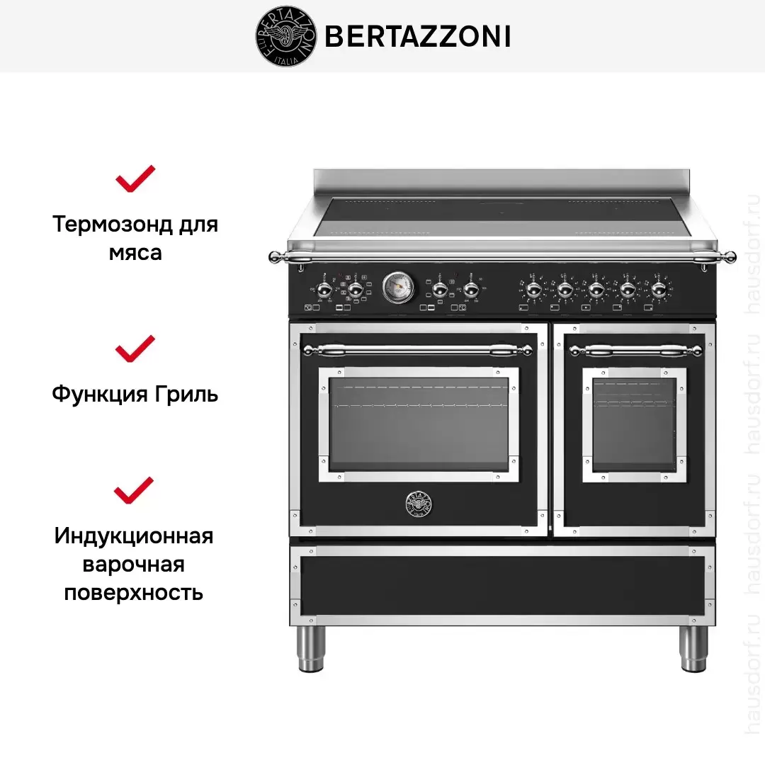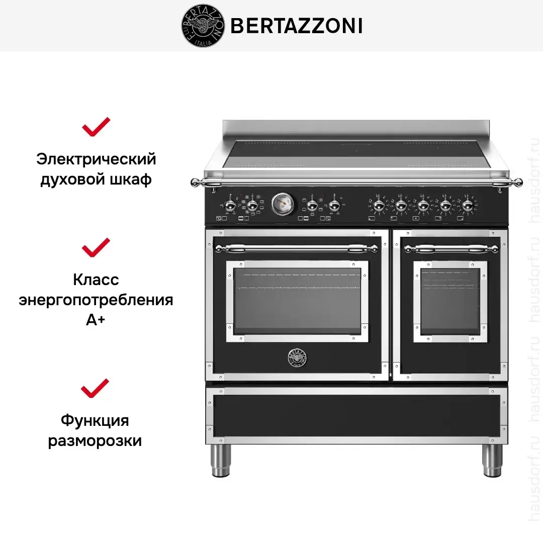 Электрический варочный центр Bertazzoni HER95I2ENET оснащен индукционной варочной поверхностью и электрическим духовым шкафом. Индукционная панель из стеклокерамики оборудована 5 конфорками и обеспечивает быстрый, равномерный прогрев дна посуды, благодаря функции Booster мощность одной из них можно увеличить. Каждая зона нагрева имеет 9 уровней мощности и дополнена датчиками остаточного тепла.