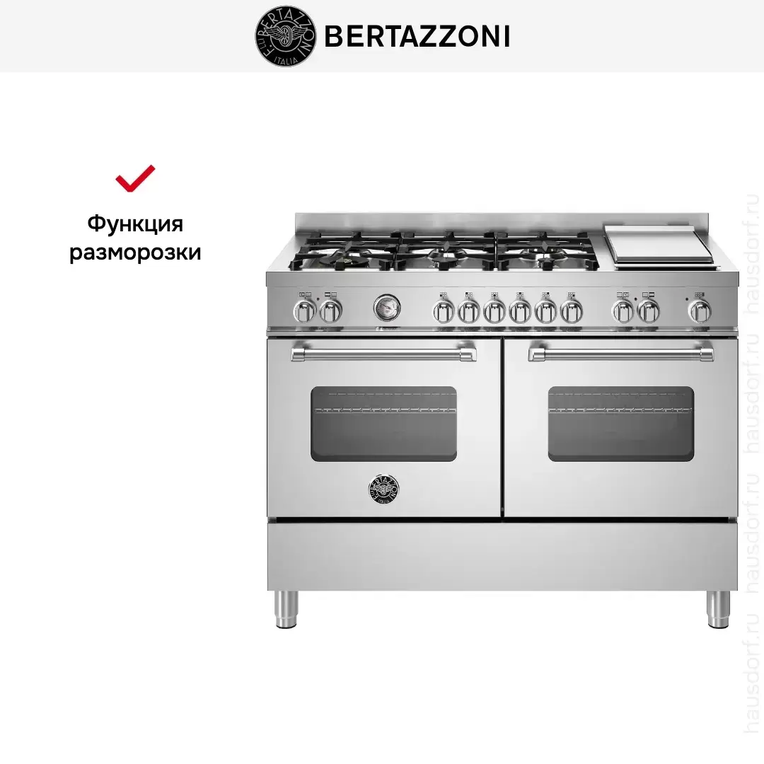 Комбинированный варочный центр Bertazzoni MAS126G2EXT в цвете нержавеющая сталь оснащен газовой варочной поверхностью и двойным электрическим духовым шкафом. Газовая панель из нержавеющей стали оборудована 6 конфорками, одна из которых имеет два контура. WOK конфорка предназначена для ускоренного разогрева, использования посуды с круглым дном и приготовления блюд в азиатском стиле. Теппан зона нагрева позволит готовить без использования посуды.