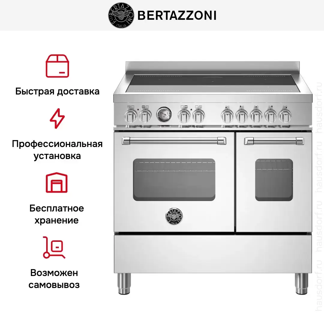 Варочный центр Bertazzoni MAS95I2EXT в корпусе из нержавеющей стали оснащен индукционной варочной поверхностью и электрическим духовым шкафом. Индукционная панель из стеклокерамики оборудована 5 конфорками и обеспечивает быстрый и равномерный прогрев, а благодаря функции Booster мощность одной из них можно увеличить для сокращения времени закипания. Каждая зона нагрева имеет 9 уровней мощности и дополнена датчиками остаточного тепла.