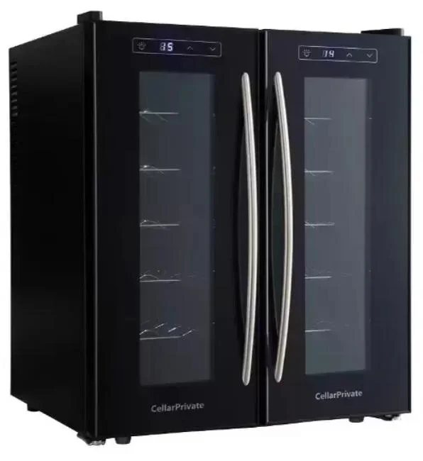 Две камеры в технике такого типа встречаются реже, чем в обычных холодильниках, эти приборы чаще всего предназначены для ресторанов или крупных коллекционеров. Охлажденный воздух поступает внутрь благодаря термоэлектрическому элементу. Размораживается автоматически, поэтому не нужно вручную удалять иней со стенок и поддерживать тем самым оптимальные условия. Общий диапазон температур, которые можно установить: 11-18 градусов.