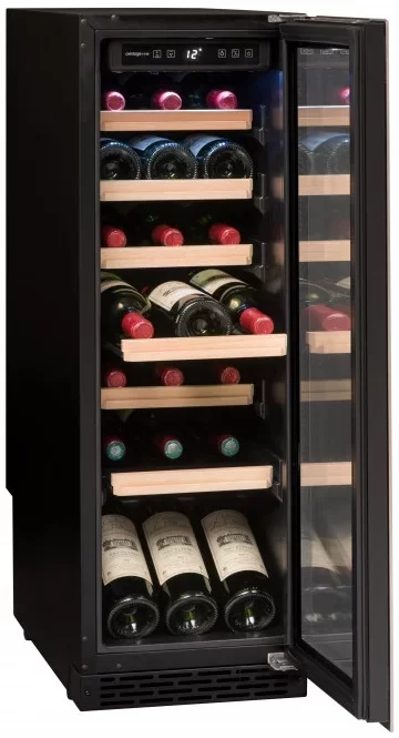 Винный шкаф Avintage вмещает 24 бутылки стандартного объема 0,75 л. Встраивается в нишу, но может устанавливаться отдельно. В камере единая температурная зона с диапазоном 5-20 градусов, в которой можно держать разные сорта. В комплекте поддон, в который стекает собирающаяся влага.