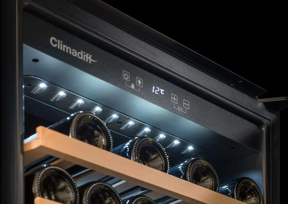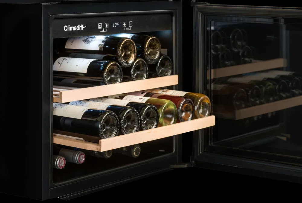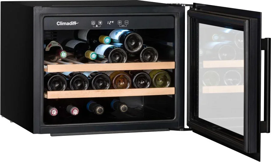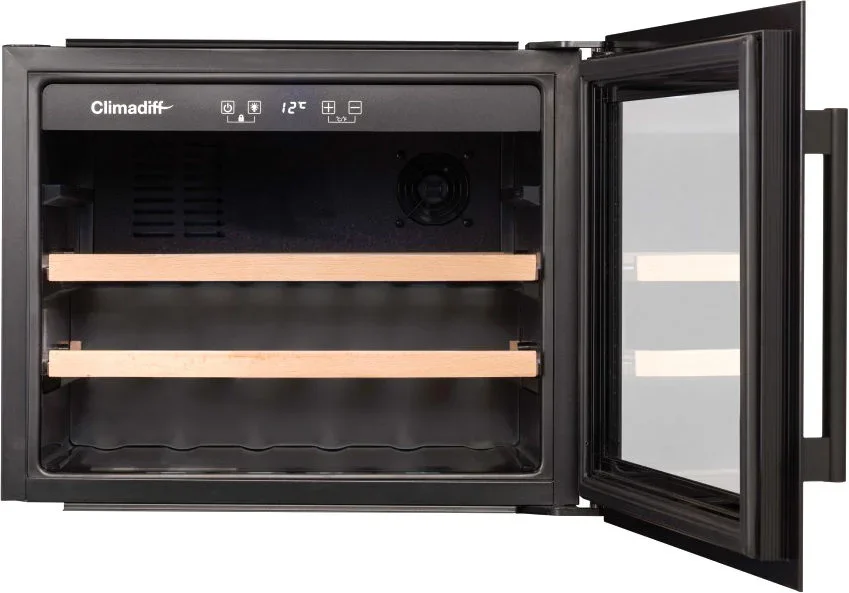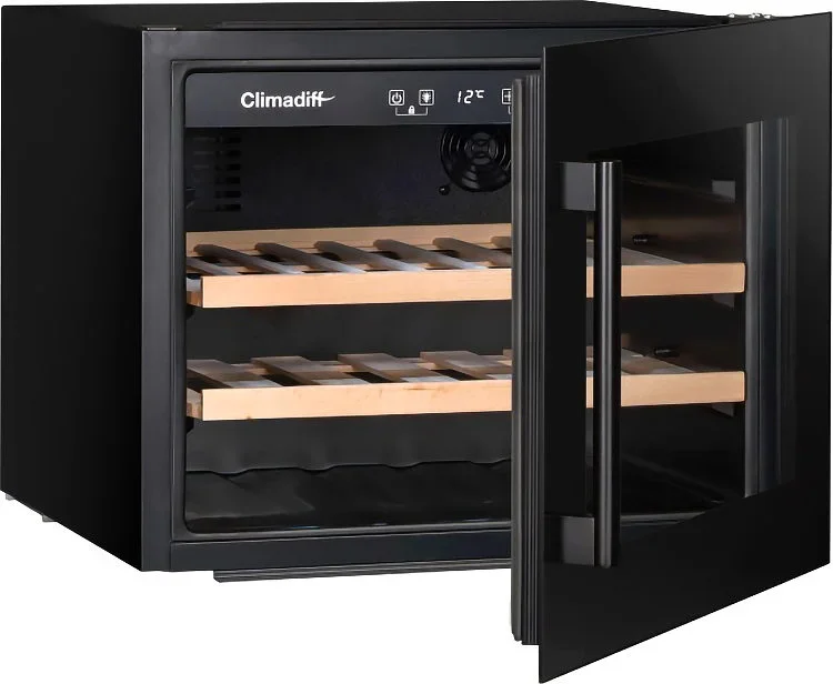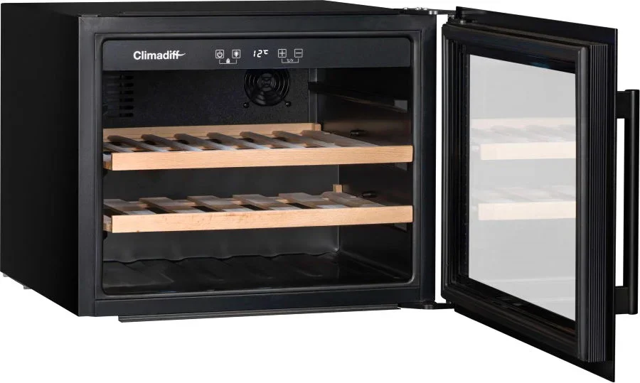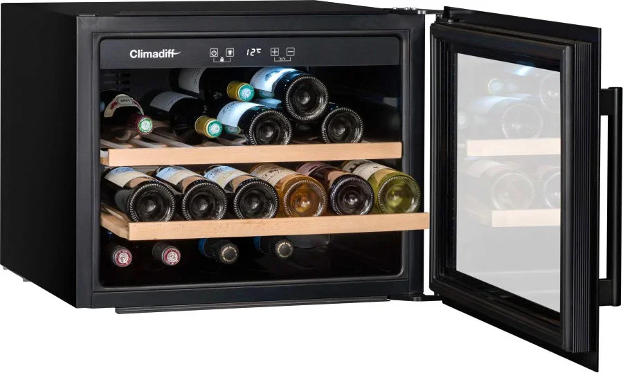 Монотемпературный винный шкаф Climadiff CBI28S1B, рассчитанный на 28 бутылок (типа Бордо), позволяет как хранить вина в течение длительного срока, так и готовить их к подаче. Шкаф оборудован перенавешиваемой дверцей, поэтому может быть установлен в любом месте. Благодаря стеклянной двери с