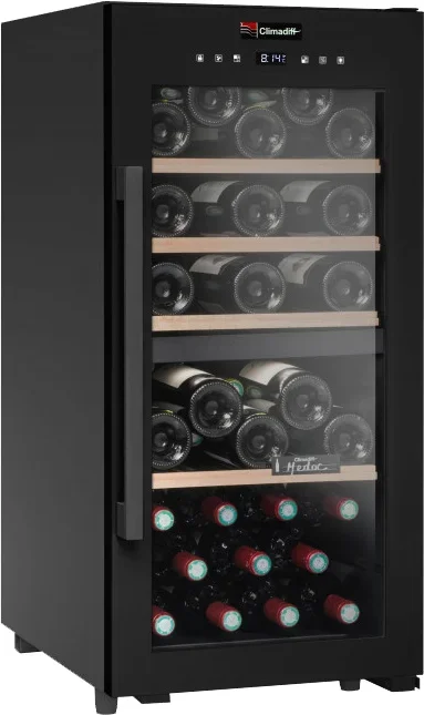 Винный шкаф Climadiff CD41B1 — компактное и элегантное решения для хранения бутылок дома. Черный корпус и дверь со стеклопакетом создают сдержанный внешний вид, который легко вписывается в современный интерьер. Благодаря размерам 85.5×40×54 см прибор не требует много места, его можно установить в нише между шкафами на кухне или в гостиной.