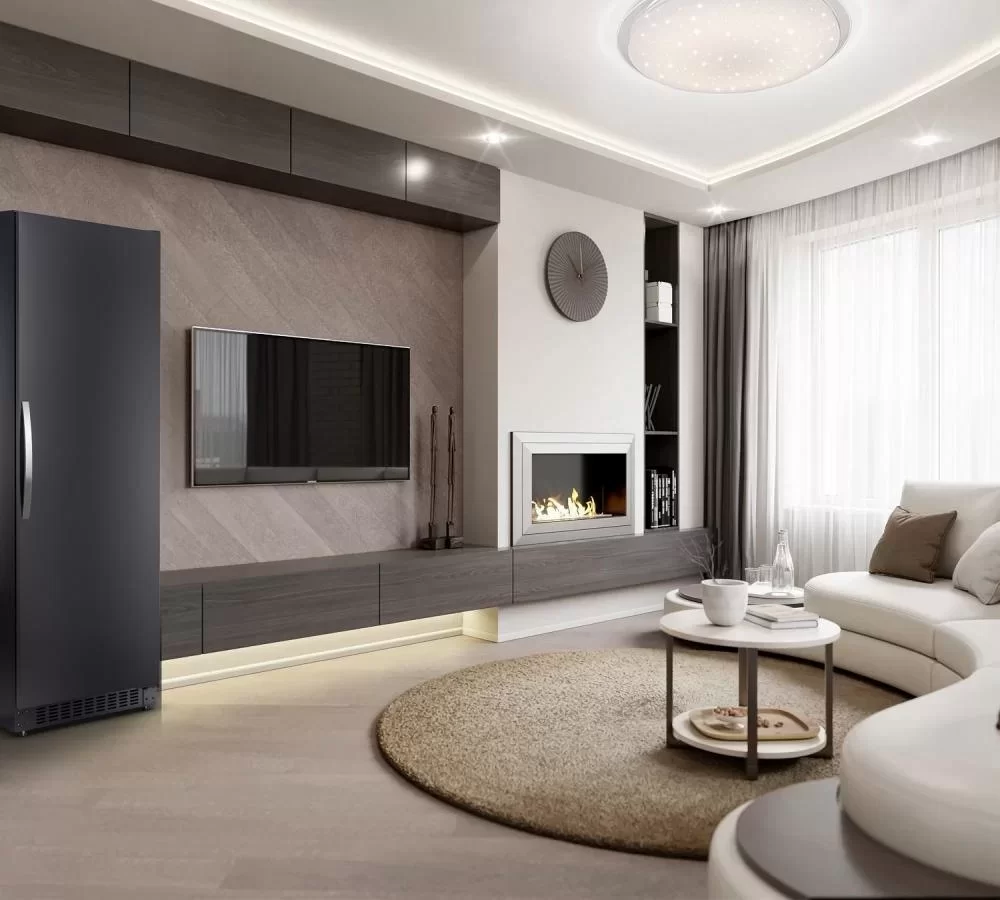Одна камера в технике такого типа встречается чаще всего, потому что в ней просто расположить все функциональные детали, и в итоге прибор действительно похож на обычный шкаф. Охлажденный воздух поступает внутрь благодаря компрессору. Общий диапазон температур, которые можно установить: 5-20 градусов. Средняя влажность воздуха (в процентах), которая поддерживается, чтобы пробки в бутылках не пересыхали: 50-80.