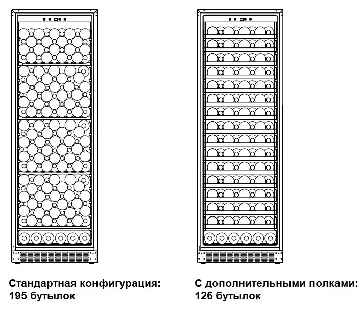 | Вместимость (бутылки 0.75 л) | 195 | |