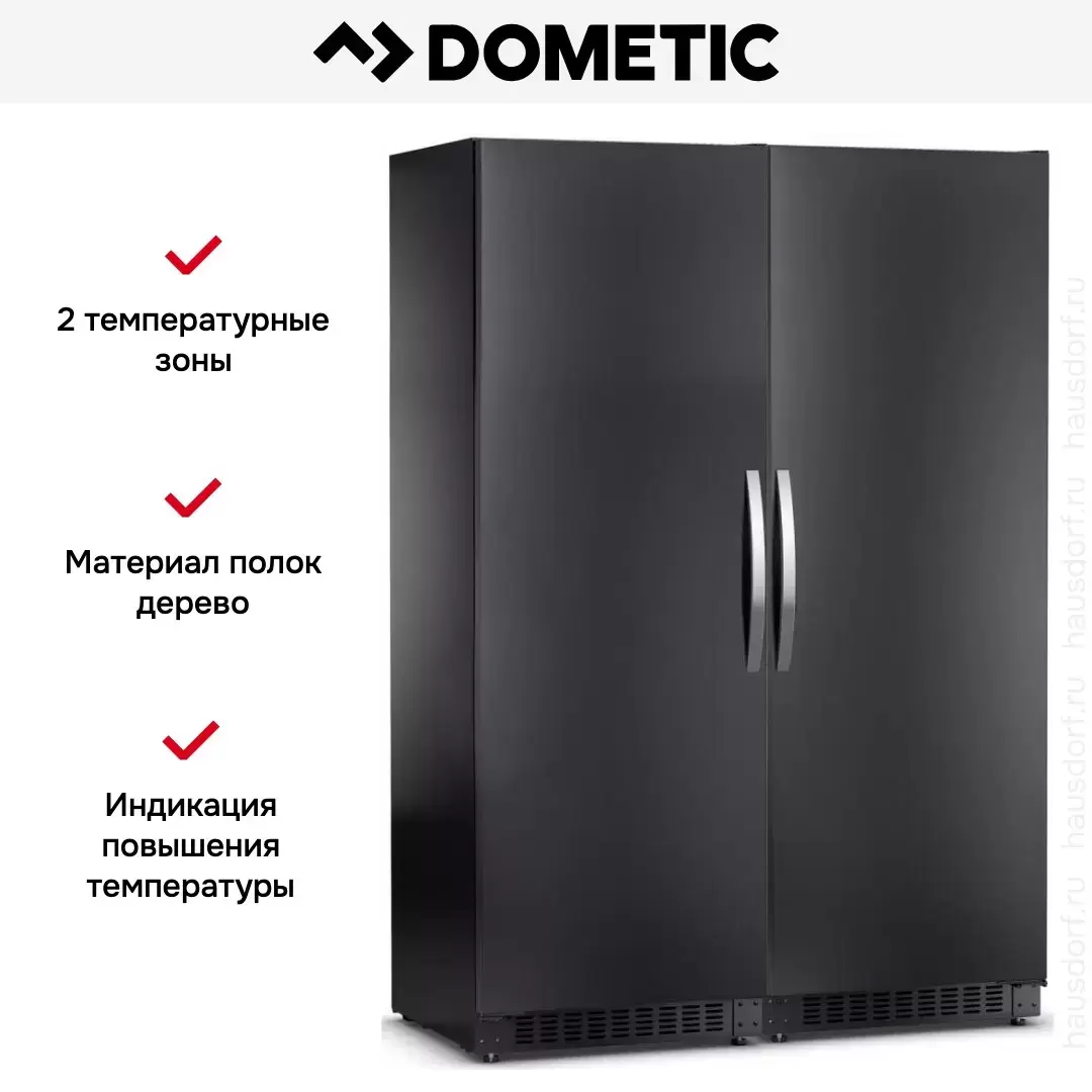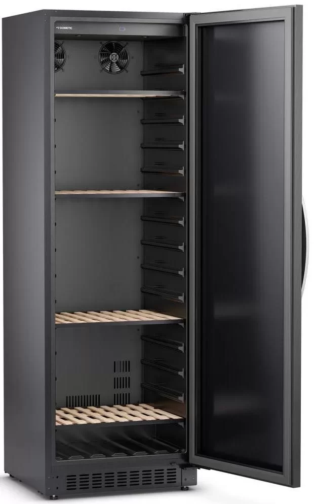 Винный холодильник Dometic B195S Double Basic имеет две температурные зоны, в которых одновременно можно хранить разные сорта алкоголя и выставлять разные сочетания настроек. Он устанавливается отдельно, что удобно, если у вас есть специальное помещение — кладовая, погреб и т.д. Количество бутылок, которое можно разместить с учетом полной комплектации и из расчета объема бутылки 0,75 л, — 390 шт.