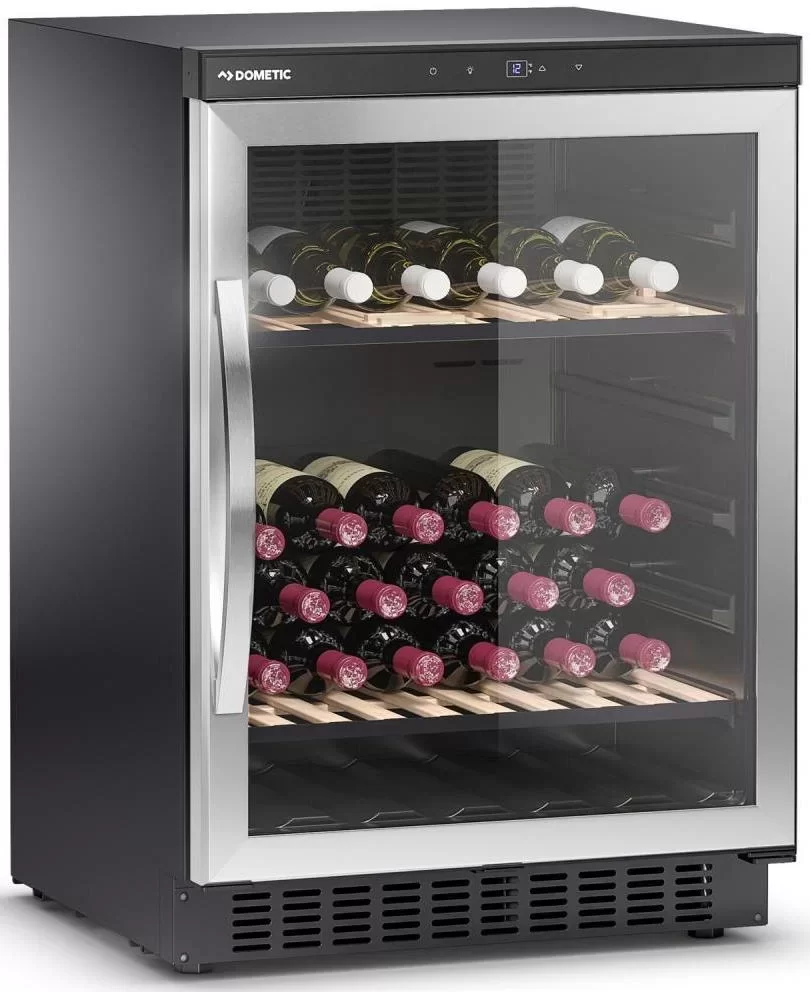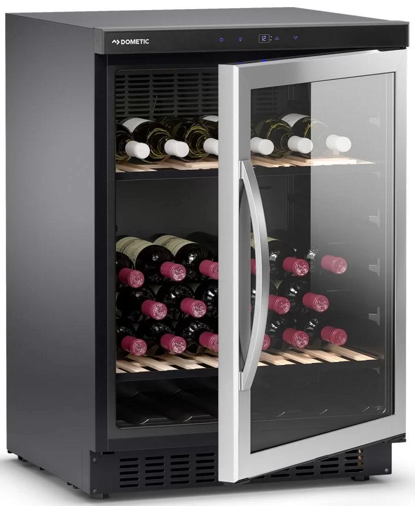 Винный холодильник Dometic B68G Basic имеет одну температурную зону, в которой можно разместить бутылки и единовременно выставить только одну комбинацию настроек. Он устанавливается отдельно, что удобно, если у вас есть специальное помещение — кладовая, погреб и т.д. Благодаря компактным размерам данная модель — отличный выбор для офиса, гостиничного номера. Количество бутылок, которое можно разместить с учетом полной комплектации и из расчета объема бутылки 0,75 л, — 68 шт.