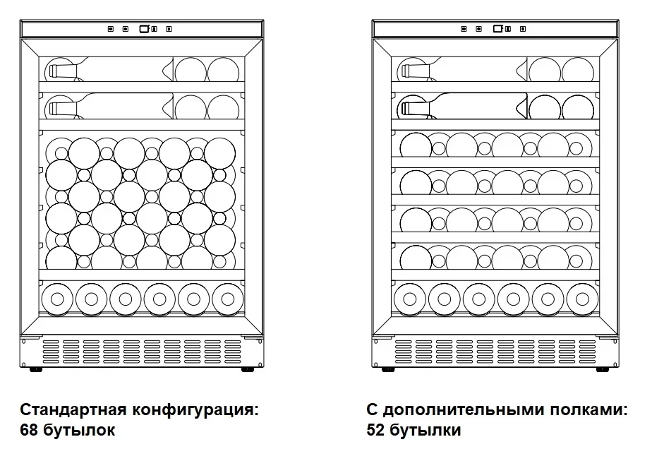 | Вместимость (бутылки 0.75 л) | 68 | |
