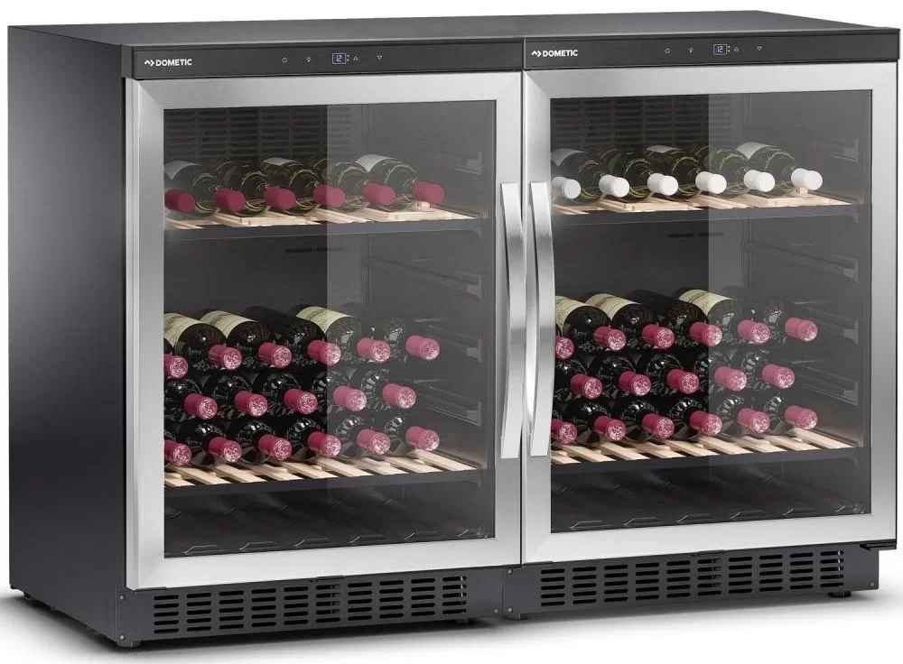 Винный холодильник Dometic B68G Double Basic имеет две температурные зоны, в которых одновременно можно хранить разные сорта алкоголя и выставлять разные сочетания настроек. Он устанавливается отдельно, что удобно, если у вас есть специальное помещение — кладовая, погреб и т.д. Благодаря компактным размерам данная модель — отличный выбор для офиса, гостиничного номера. Количество бутылок, которое можно разместить с учетом полной комплектации и из расчета объема бутылки 0,75 л, — 136 шт.