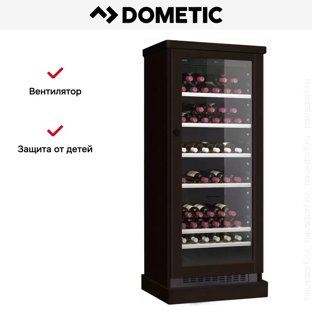 Винный холодильник Dometic C101G Wooden Wenge имеет одну температурную зону, в которой можно разместить бутылки и единовременно выставить только одну комбинацию настроек. Он устанавливается отдельно, что удобно, если у вас есть специальное помещение — кладовая, погреб и т.д. Количество бутылок, которое можно разместить с учетом полной комплектации и из расчета объема бутылки 0,75 л, — 101 шт.