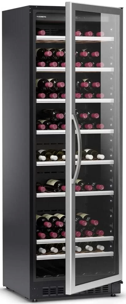 Винный холодильник Dometic C125G Double Classic имеет две температурные зоны, в которых одновременно можно хранить разные сорта алкоголя и выставлять разные сочетания настроек. Он устанавливается отдельно, что удобно, если у вас есть специальное помещение — кладовая, погреб и т.д. Количество бутылок, которое можно разместить с учетом полной комплектации и из расчета объема бутылки 0,75 л, — 250 шт.