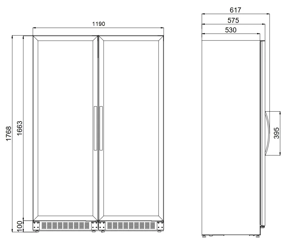 Две камеры в технике такого типа встречаются реже, чем в обычных холодильниках, эти приборы чаще всего предназначены для ресторанов или крупных коллекционеров. Охлажденный воздух поступает внутрь благодаря компрессору. Общий диапазон температур, которые можно установить: 5-20 градусов. Средняя влажность воздуха (в процентах), которая поддерживается, чтобы пробки в бутылках не пересыхали: 50-80.