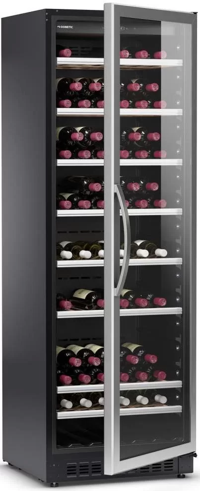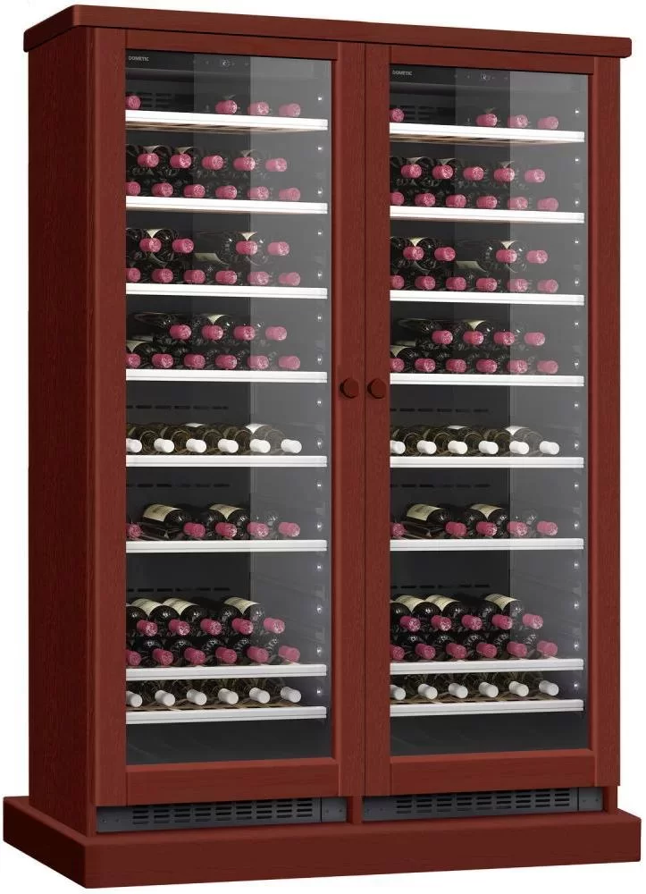 Винный холодильник Dometic C125G Double Wooden Mahogany имеет две температурные зоны, в которых одновременно можно хранить разные сорта алкоголя и выставлять разные сочетания настроек. Он устанавливается отдельно, что удобно, если у вас есть специальное помещение — кладовая, погреб и т.д. Количество бутылок, которое можно разместить с учетом полной комплектации и из расчета объема бутылки 0,75 л, — 250 шт.
