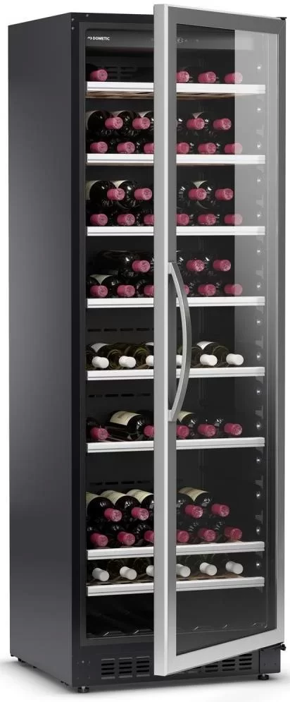 Винный холодильник Dometic C125G Quattro Classic имеет две температурные зоны, в которых одновременно можно хранить разные сорта алкоголя и выставлять разные сочетания настроек. Он устанавливается отдельно, что удобно, если у вас есть специальное помещение — кладовая, погреб и т.д. Количество бутылок, которое можно разместить с учетом полной комплектации и из расчета объема бутылки 0,75 л, — 500 шт.