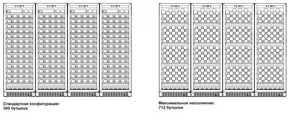 | Вместимость (бутылки 0.75 л) | 500 | |