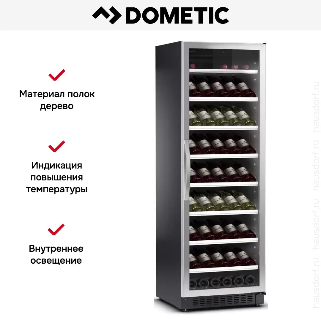 Винный холодильник Dometic C125G VinoView Classic имеет одну температурную зону, в которой можно разместить бутылки и единовременно выставить только одну комбинацию настроек. Он устанавливается отдельно, что удобно, если у вас есть специальное помещение — кладовая, погреб и т.д. Количество бутылок, которое можно разместить с учетом полной комплектации и из расчета объема бутылки 0,75 л, — 68 шт.