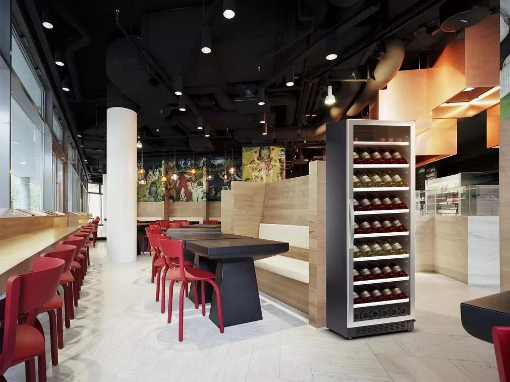 Одна камера в технике такого типа встречается чаще всего, потому что в ней просто расположить все функциональные детали, и в итоге прибор действительно похож на обычный шкаф. Охлажденный воздух поступает внутрь благодаря компрессору. Общий диапазон температур, которые можно установить: 5-20 градусов. Средняя влажность воздуха (в процентах), которая поддерживается, чтобы пробки в бутылках не пересыхали: 50-80.