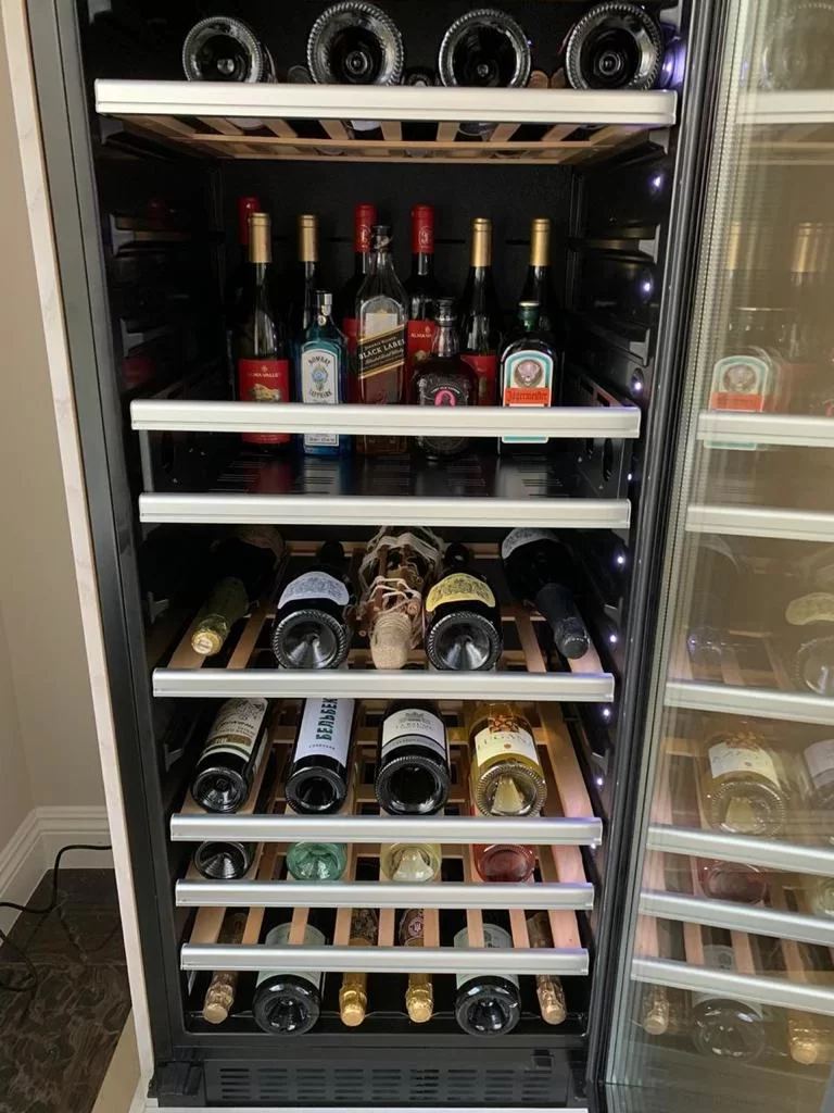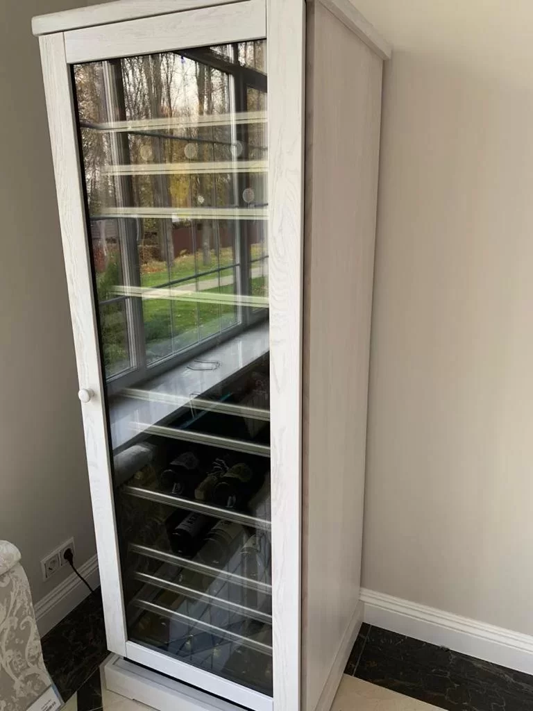 Электронное управление помогает быстро разобраться в том, как функционирует эта модель, и легко настроить все необходимые параметры. На дисплее отображаются данные, которые собирают датчики в камере. Лампочки, расположенные внутри, хорошо подсвечивают бутылки. Всего полок, на которых можно разместить коллекцию, в шкафу 8 шт. Пространство тщательно вентилируется, чтобы воздух не застаивался, не попадали посторонние запахи.