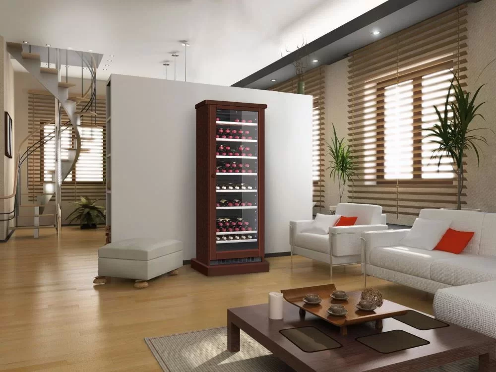Одна камера в технике такого типа встречается чаще всего, потому что в ней просто расположить все функциональные детали, и в итоге прибор действительно похож на обычный шкаф. Охлажденный воздух поступает внутрь благодаря компрессору. Общий диапазон температур, которые можно установить: 5-20 градусов. Средняя влажность воздуха (в процентах), которая поддерживается, чтобы пробки в бутылках не пересыхали: 50-80.