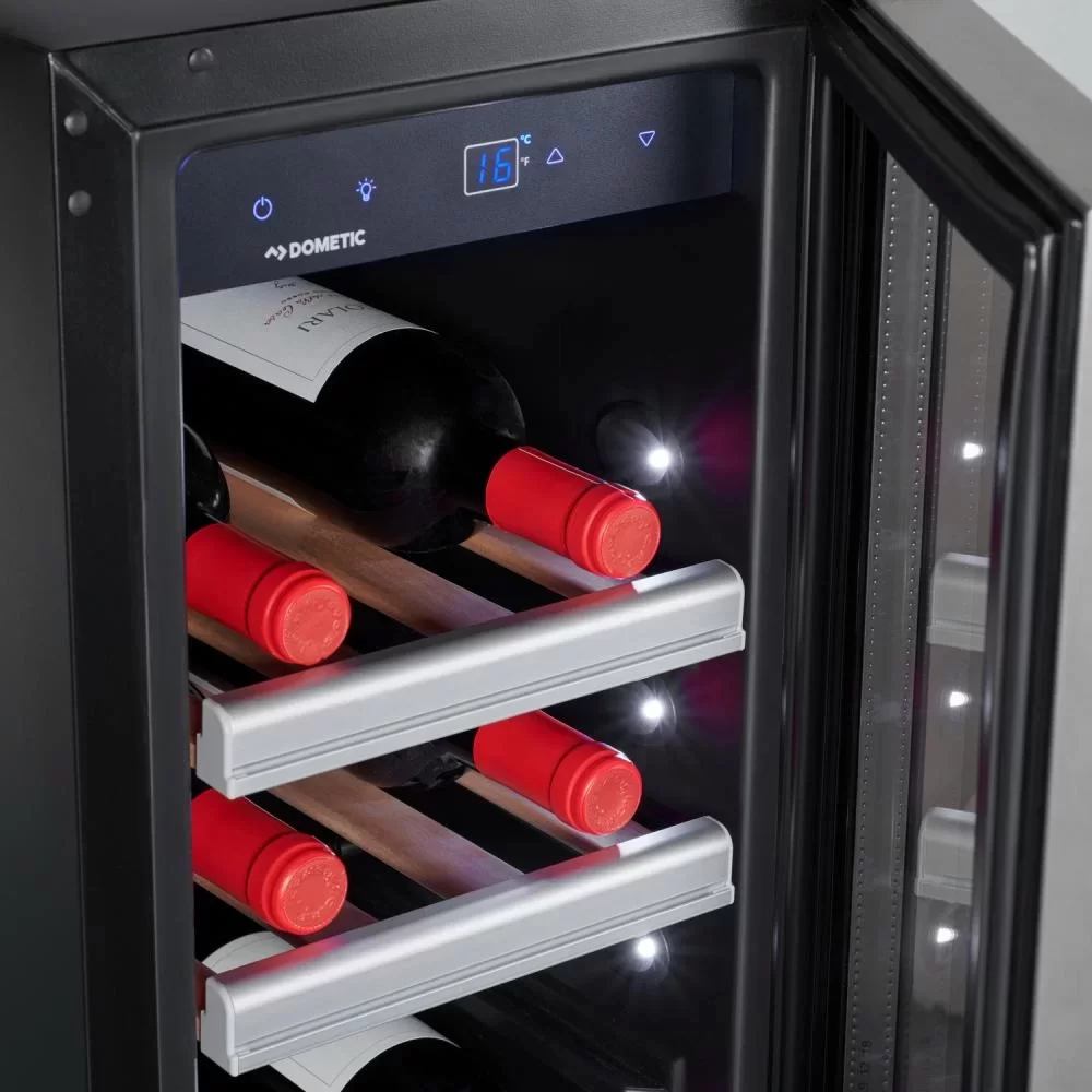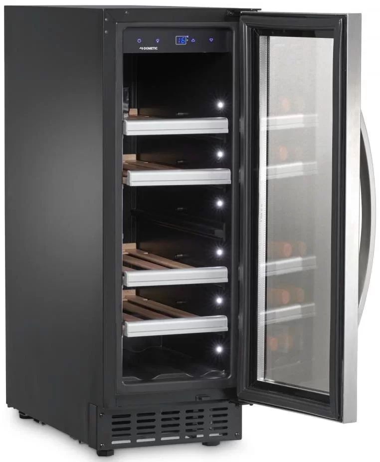 Винный холодильник Dometic C20G Classic имеет одну температурную зону, в которой можно разместить бутылки и единовременно выставить только одну комбинацию настроек. Он устанавливается отдельно, что удобно, если у вас есть специальное помещение — кладовая, погреб и т.д. Благодаря компактным размерам данная модель — отличный выбор для офиса, гостиничного номера. Количество бутылок, которое можно разместить с учетом полной комплектации и из расчета объема бутылки 0,75 л, — 20 шт.