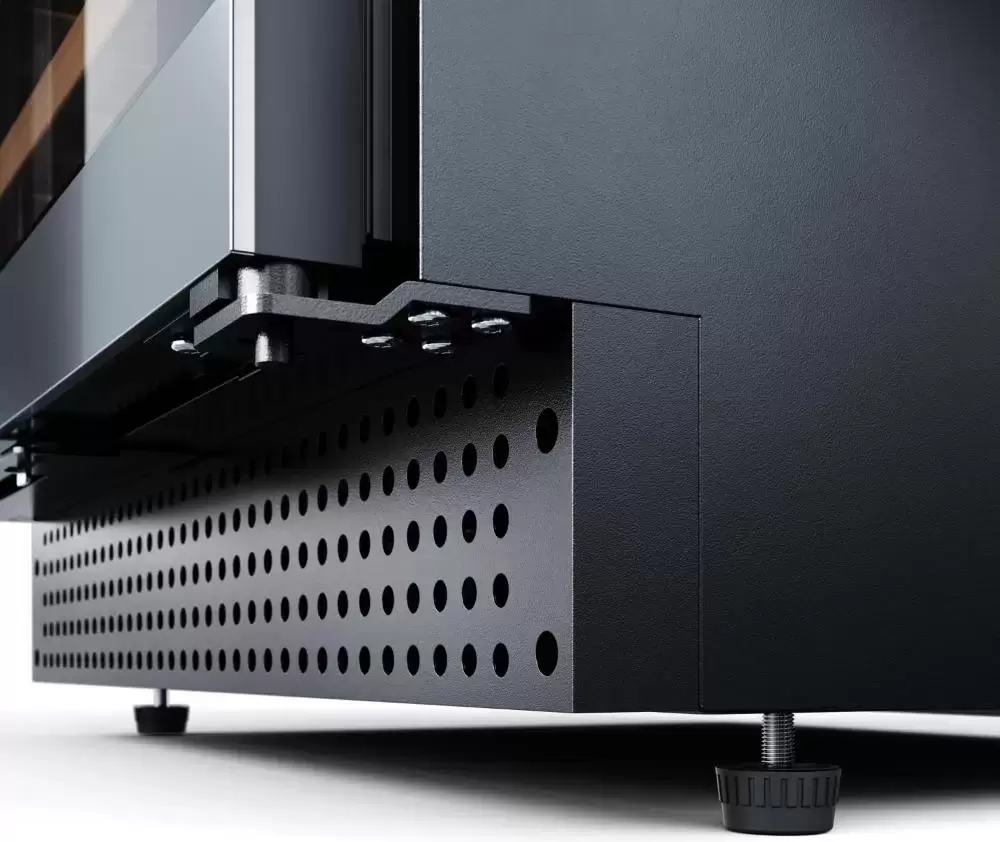 Стеклянная дверь — дополнительный изящный штрих к общему дизайну модели. Специальное покрытие защищает вино от влияния ультрафиолетовых лучей, которые проникают, если шкаф находится в солнечной комнате. Хранение становится еще безопаснее и герметичнее благодаря нескольким слоям стекол. Цвет корпуса — серебристый. Дверь можно перевесить на другую сторону, поэтому вариантов размещения его в доме становится больше.