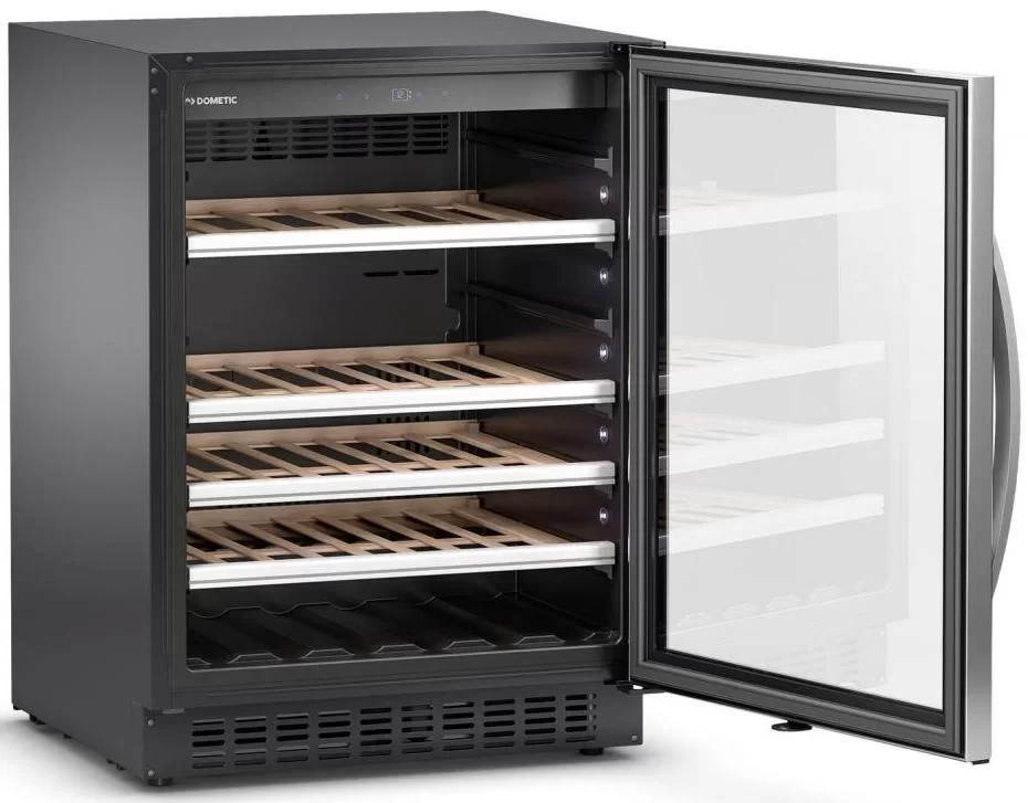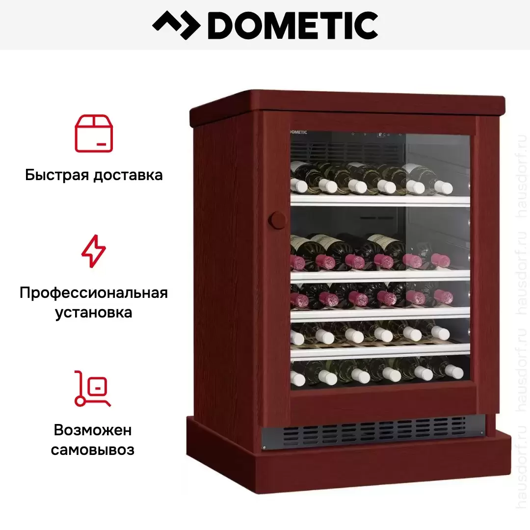 Винный холодильник Dometic C50G Wooden Mahogany имеет одну температурную зону, в которой можно разместить бутылки и единовременно выставить только одну комбинацию настроек. Он устанавливается отдельно, что удобно, если у вас есть специальное помещение — кладовая, погреб и т.д. Количество бутылок, которое можно разместить с учетом полной комплектации и из расчета объема бутылки 0,75 л, — 50 шт.