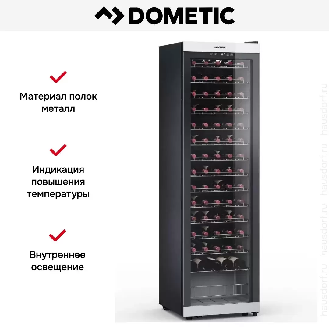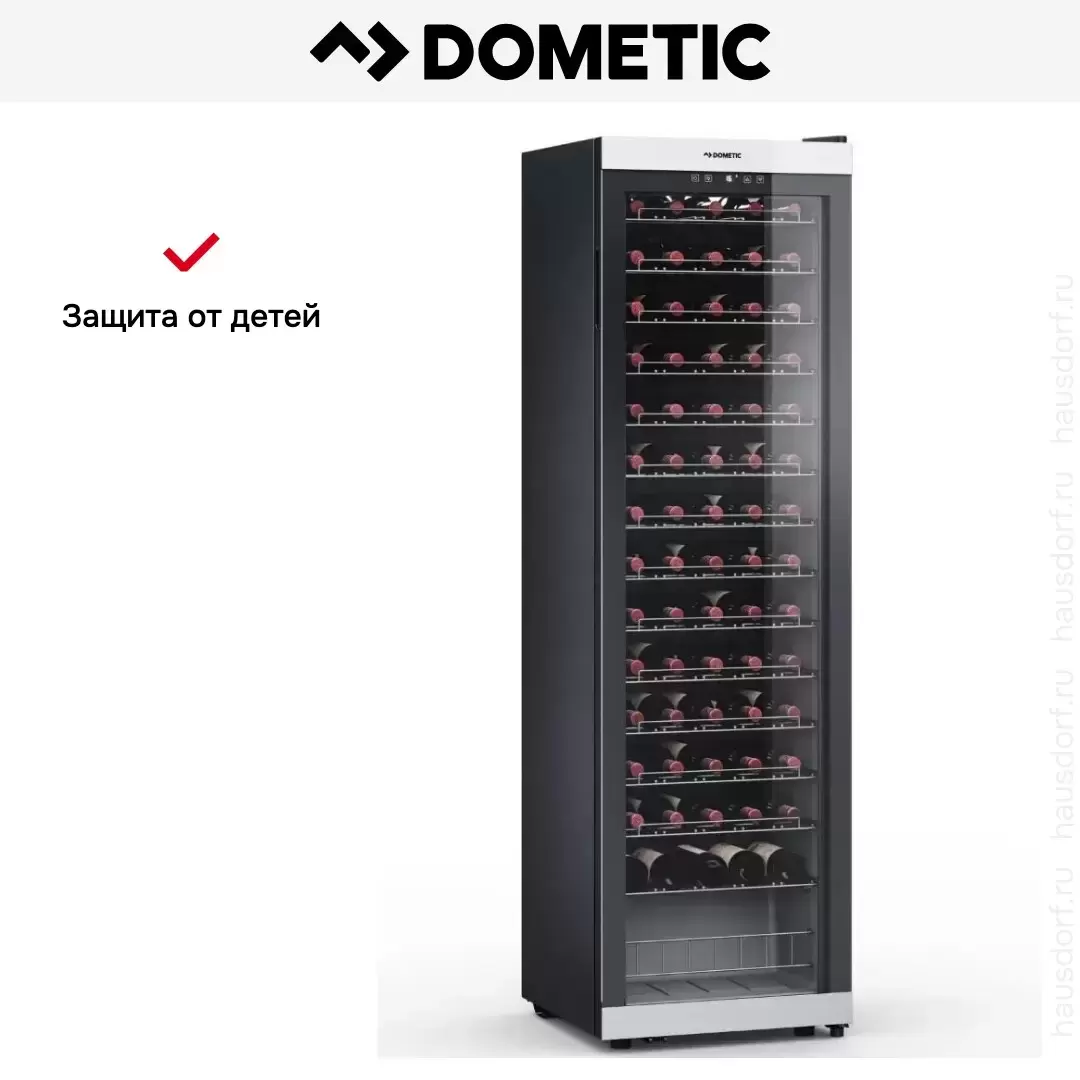 Винный холодильник Dometic C75F Classic имеет одну температурную зону, в которой можно разместить бутылки и единовременно выставить только одну комбинацию настроек. Он устанавливается отдельно, что удобно, если у вас есть специальное помещение — кладовая, погреб и т.д. Количество бутылок, которое можно разместить с учетом полной комплектации и из расчета объема бутылки 0,75 л, — 75 шт.