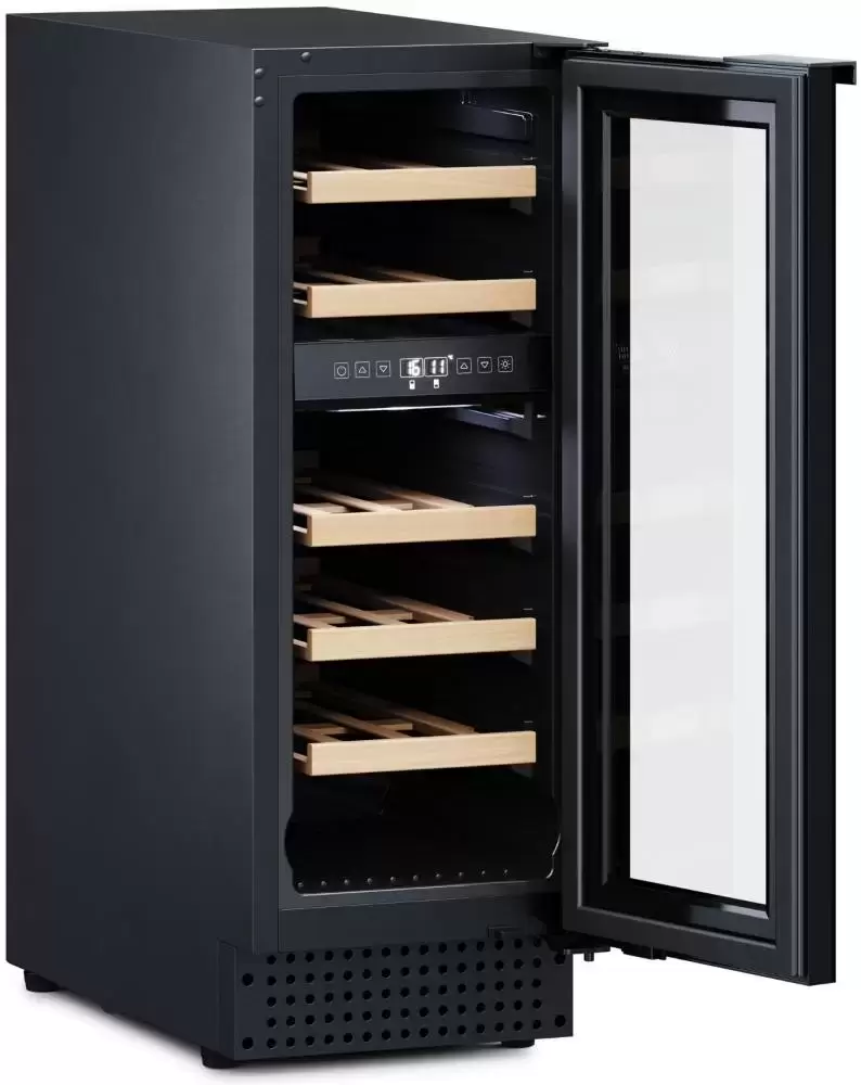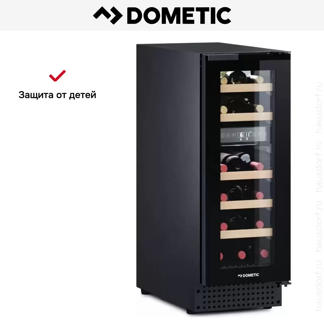 Винный холодильник Dometic D18B Design имеет две температурные зоны, в которых одновременно можно хранить разные сорта алкоголя и выставлять разные сочетания настроек. Он устанавливается отдельно, что удобно, если у вас есть специальное помещение — кладовая, погреб и т.д. Благодаря компактным размерам данная модель — отличный выбор для офиса, гостиничного номера. Количество бутылок, которое можно разместить с учетом полной комплектации и из расчета объема бутылки 0,75 л, — 18 шт.