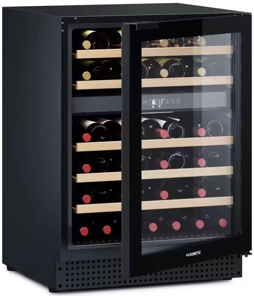 Двухтемпературный винный шкаф отлично подходит для длительного хранения нескольких сортов одновременно или для хранения в одном отделении и подготовки к подаче в другом. В камере поддерживается постоянный уровень влажности 50-70 процентов, чтобы пробки в бутылках не рассыхались и разбухали — в таком случае нарушается герметичность, в вино попадает воздух или конденсат, изменяя его свойства.