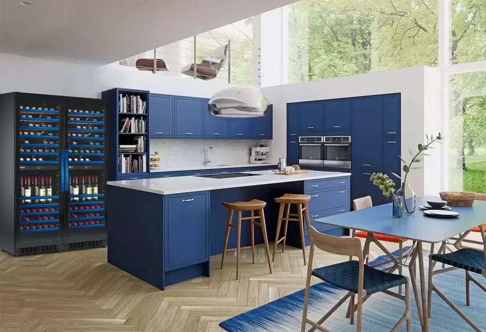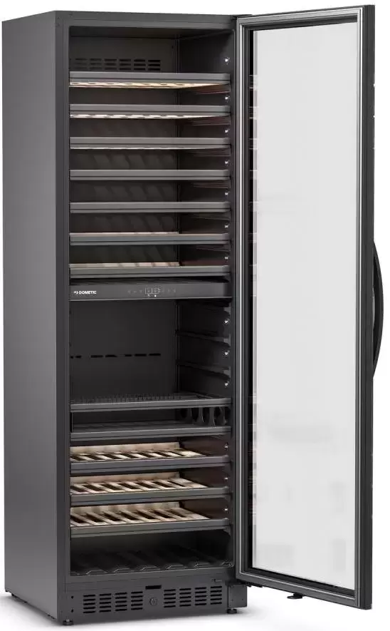 Винный холодильник Dometic E115FG Double Blue имеет несколько температурных зон, в которых одновременно можно хранить разные сорта алкоголя и выставлять разные сочетания настроек. Он устанавливается отдельно, что удобно, если у вас есть специальное помещение — кладовая, погреб и т.д. Количество бутылок, которое можно разместить с учетом полной комплектации и из расчета объема бутылки 0,75 л, — 230 шт.