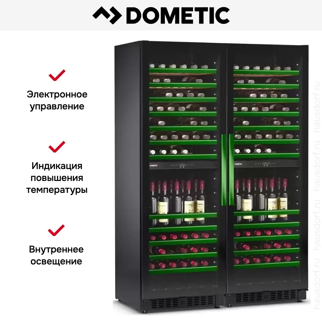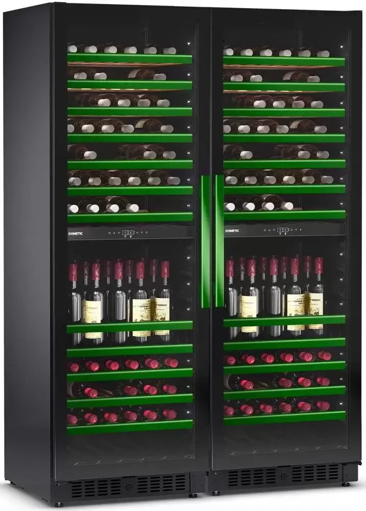 Винный холодильник Dometic E115FG Double Green имеет несколько температурных зон, в которых одновременно можно хранить разные сорта алкоголя и выставлять разные сочетания настроек. Он устанавливается отдельно, что удобно, если у вас есть специальное помещение — кладовая, погреб и т.д. Количество бутылок, которое можно разместить с учетом полной комплектации и из расчета объема бутылки 0,75 л, — 230 шт.