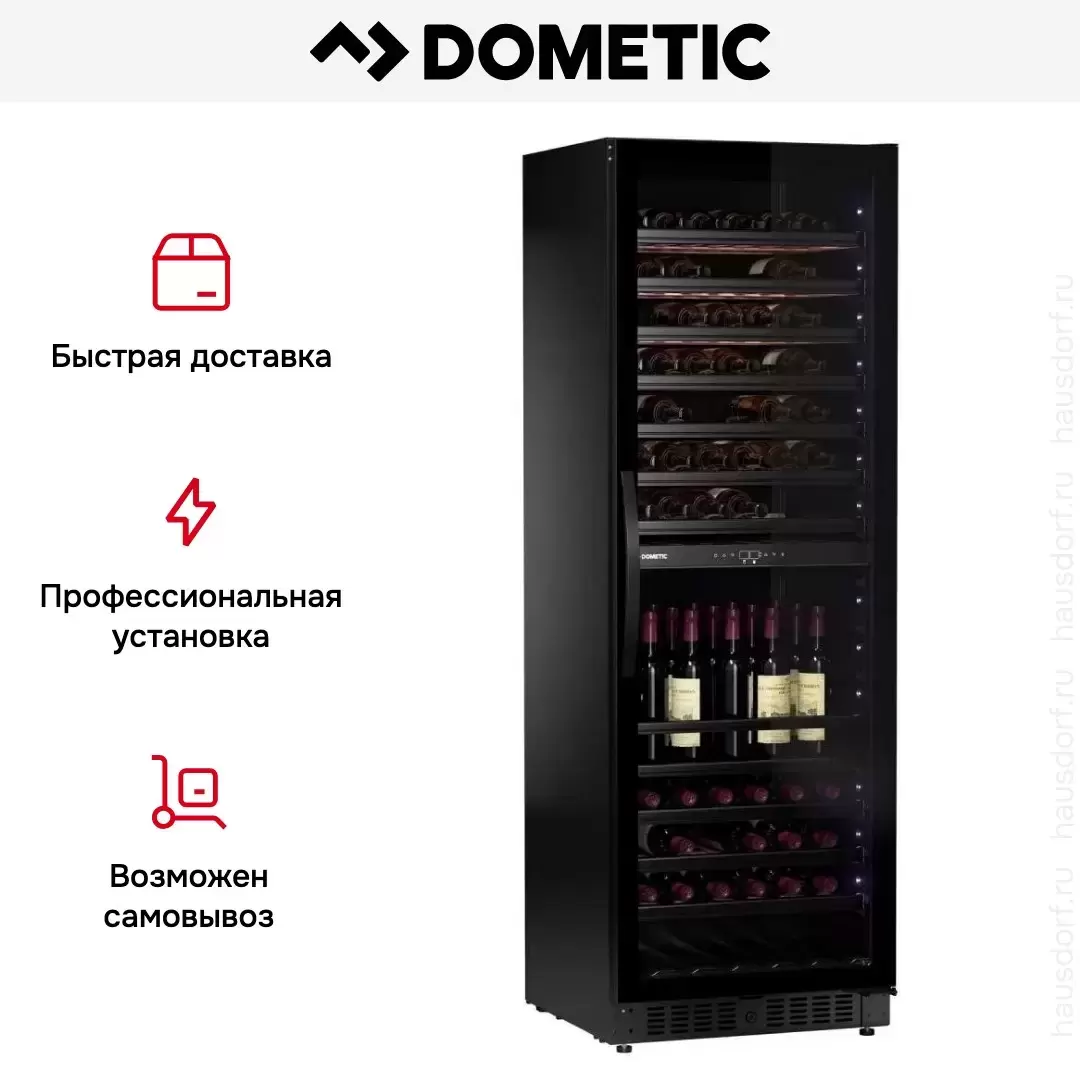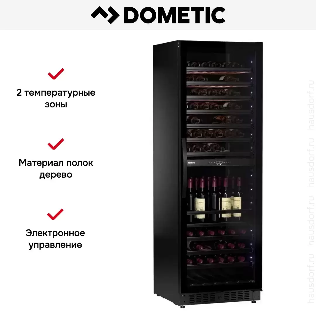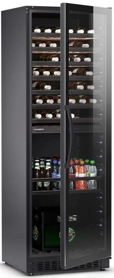 Винный холодильник Dometic E115FG Elegance имеет две температурные зоны, в которых одновременно можно хранить разные сорта алкоголя и выставлять разные сочетания настроек. Он устанавливается отдельно, что удобно, если у вас есть специальное помещение — кладовая, погреб и т.д. Количество бутылок, которое можно разместить с учетом полной комплектации и из расчета объема бутылки 0,75 л, — 115 шт.