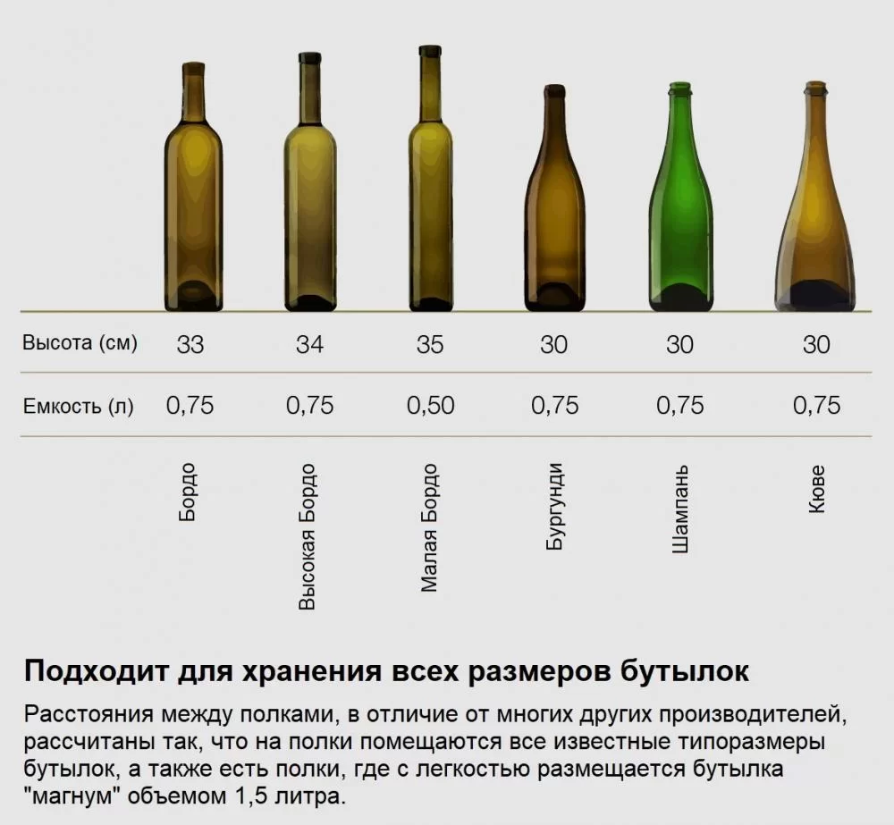 | Дополнительные параметры | Стандартная комплектация: 2 ключа, ярлыки для записей даты закладки вина | |
