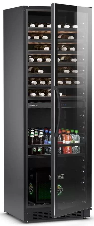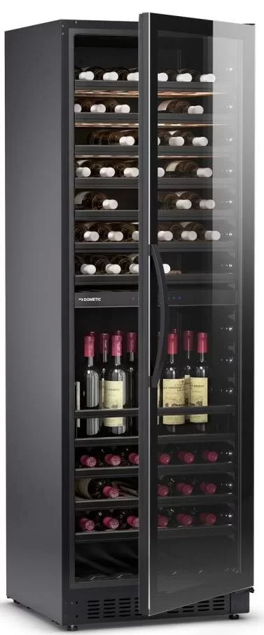 Винный холодильник Dometic E115FG Quattro Elegance имеет две температурные зоны, в которых одновременно можно хранить разные сорта алкоголя и выставлять разные сочетания настроек. Он устанавливается отдельно, что удобно, если у вас есть специальное помещение — кладовая, погреб и т.д. Количество бутылок, которое можно разместить с учетом полной комплектации и из расчета объема бутылки 0,75 л, — 460 шт.
