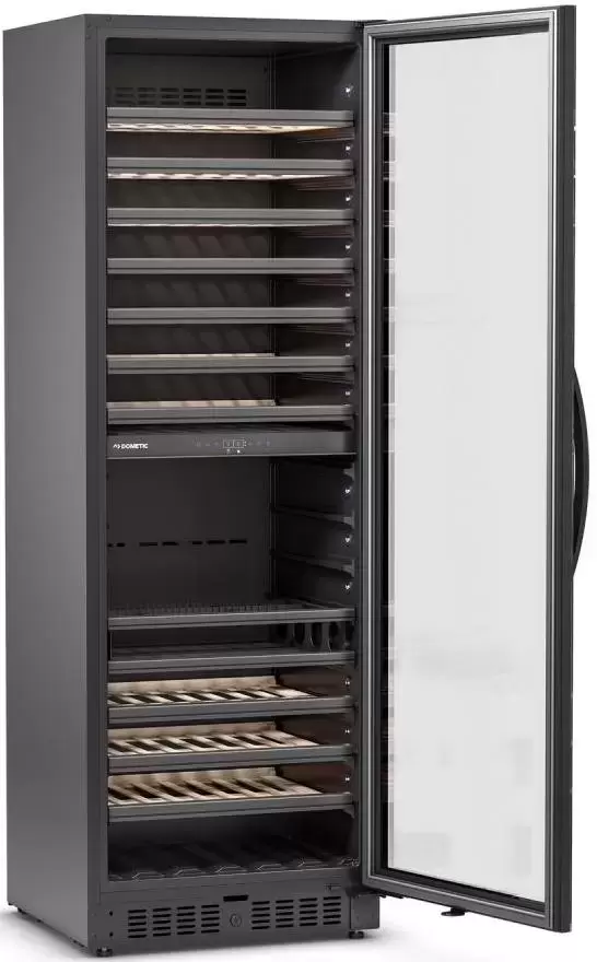 Винный холодильник Dometic E115FG Red имеет две температурные зоны, в которых одновременно можно хранить разные сорта алкоголя и выставлять разные сочетания настроек. Он устанавливается отдельно, что удобно, если у вас есть специальное помещение — кладовая, погреб и т.д. Количество бутылок, которое можно разместить с учетом полной комплектации и из расчета объема бутылки 0,75 л, — 115 шт.