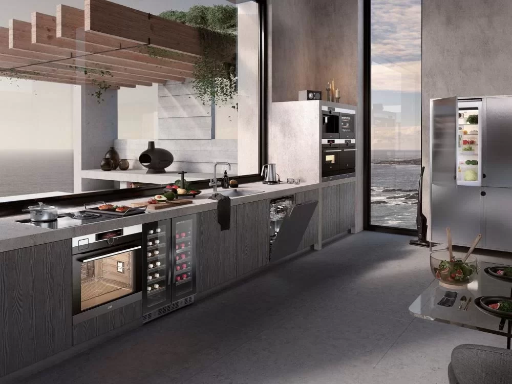 Стеклянная дверь — дополнительный изящный штрих к общему дизайну модели. Хранение становится еще безопаснее и герметичнее благодаря нескольким слоям стекол. Цвет корпуса — черный.