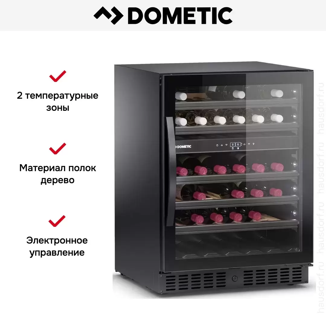 Винный холодильник Dometic E45FG Elegance имеет две температурные зоны, в которых одновременно можно хранить разные сорта алкоголя и выставлять разные сочетания настроек. Он устанавливается отдельно, что удобно, если у вас есть специальное помещение — кладовая, погреб и т.д. Благодаря компактным размерам данная модель — отличный выбор для офиса, гостиничного номера. Количество бутылок, которое можно разместить с учетом полной комплектации и из расчета объема бутылки 0,75 л, — 45 шт.
