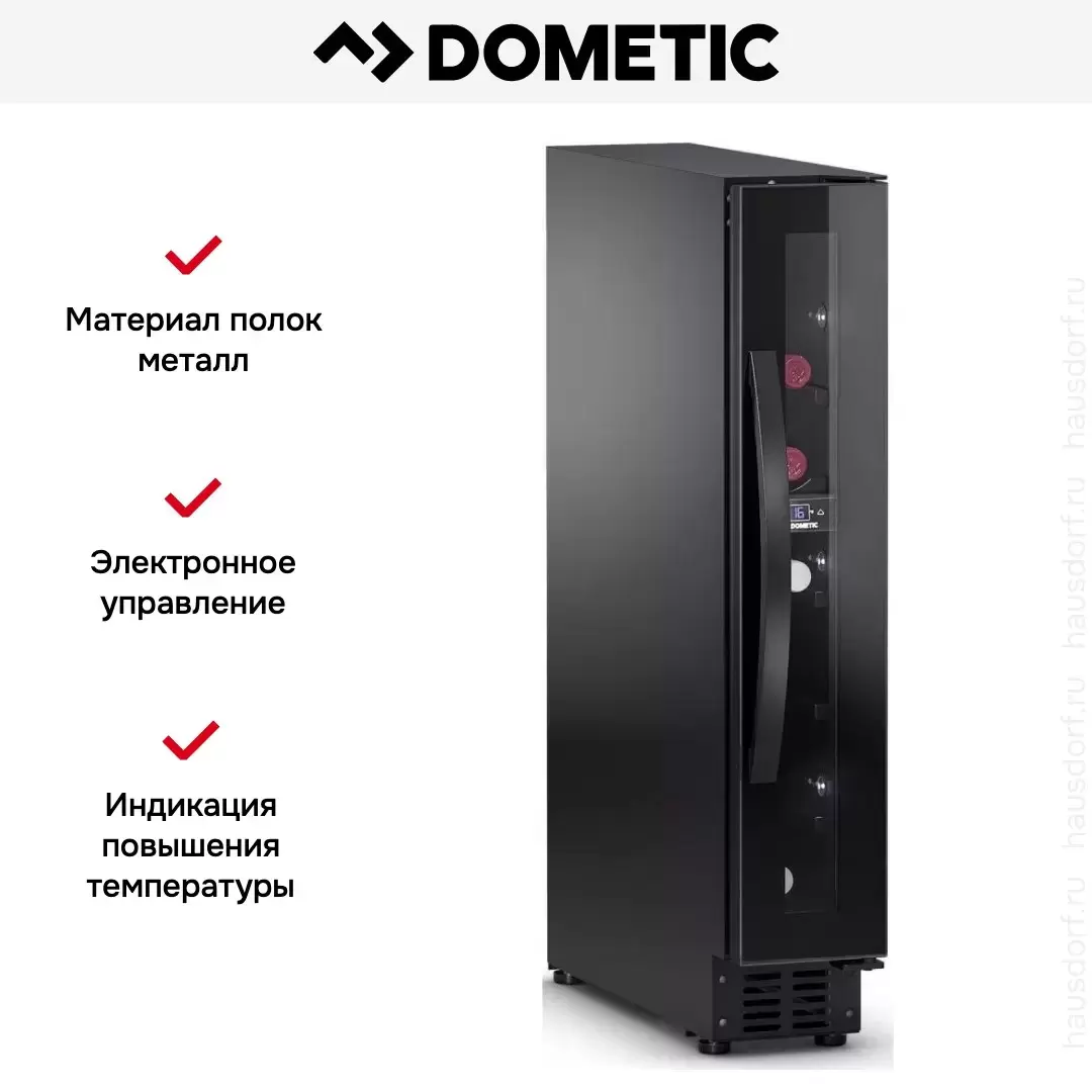 Винный холодильник Dometic E7FG Elegance имеет одну температурную зону, в которой можно разместить бутылки и единовременно выставить только одну комбинацию настроек. Он устанавливается отдельно, что удобно, если у вас есть специальное помещение — кладовая, погреб и т.д. Благодаря компактным размерам данная модель — отличный выбор для офиса, гостиничного номера. Количество бутылок, которое можно разместить с учетом полной комплектации и из расчета объема бутылки 0,75 л, — 7 шт.