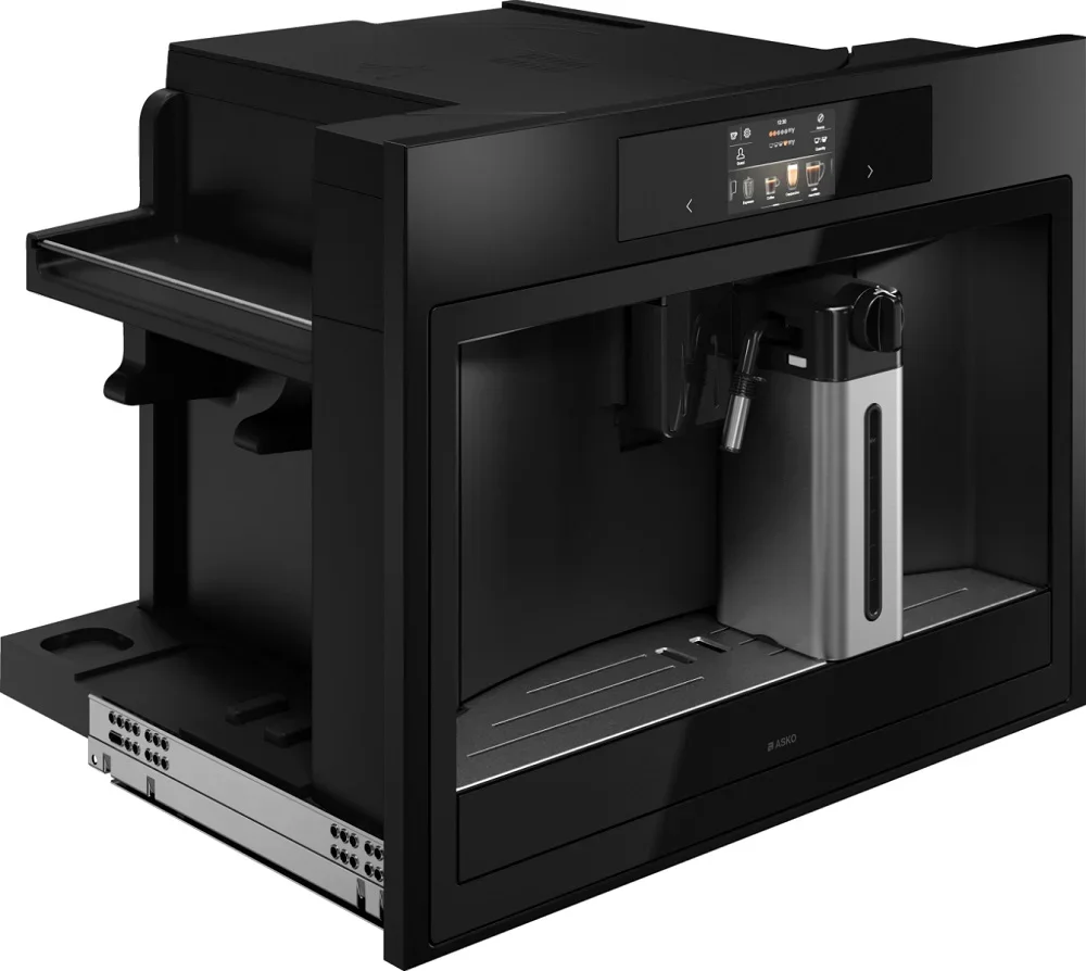 Встраиваемая кофемашина ASKO CMB64GS представлена в элегантном графитовом исполнении с оформлением Craft, которое легко впишется в современную кухню, подчёркивая интерьер строгими линиями и аккуратной подсветкой; компактные габариты корпуса — высота 45 см, ширина 59 см, глубина 47 см — делают её удобной для интеграции в шкаф с нишей размеров 45×56×55 см, а тщательно продуманная эргономика обеспечивает комфорт при эксплуатации и обслуживании. Панель управления с ярким TFT-дисплеем и сенсорными переключателями интуитивно информирует о ходе приготовления и настройках на русском языке, подсветка LED подчёркивает стиль и облегчает выбор режимов, а функция блокировки от детей добавляет уверенности в безопасности. Прибор рассчитан на работу с молотым и зерновым сырьём: вместительный бункер для зёрен ёмкостью 350 г, дополненный ёмкостью для молотого кофе, позволяет быстро переключаться между сортами и экспериментировать с рецептурами, а съёмный бачок для жидкости объёмом 2400 мл и удобный съёмный молочный модуль из нержавеющей стали ёмкостью 500 мл упрощают заправку и чистку. Технически устройство выделяется наличием отдельных нагревателей для заваривания и для пара, что обеспечивает стабильность температуры и скорую подачу насыщенного вспененного молока; давление пара 15 бар гарантирует плотную кремовую пену, а функция предварительного смачивания зерен раскрывает аромат даже при тонкой настройке интенсивности. Система управления предлагает гибкие возможности персонализации: регулировка крепости, объёма порции, степени помола с 13 градациями и пятью вариантами профилей вкупе с шестью пользовательскими аккаунтами делает возможным сохранять любимые параметры для нескольких членов семьи; предусмотрено четыре уровня температур и отдельная регулировка нагрева воды. Машина умеет готовить полноценный набор напитков: эспрессо, двойной эспрессо, эспрессо макиато, капучино, капучино+, латте, латте макиато, классический кофе, лунго, горячее молоко и горячую воду для чая, что делает её универсальным решением для утренних и вечерних ритуалов. Практичность подтверждается телескопическими направляющими для заполнения, переставляемой по высоте насадкой под разные чашки, вместительным поддоном для капель на 1 литр и индикаторами уровня воды, запаса кофе, заполнения поддона и контейнера отработанной гущи, которые своевременно напомнят о необходимости обслуживания; лёгкосъёмный заварочный узел упрощает ручную очистку, а автоматические программы промывки, удаления накипи и паровой очистки молочной системы сохраняют гигиеничность без лишних усилий. Среди дополнительных преимуществ — шестнадцать автоматических программ (всего 15 программ реализации напитков), возможность хранения аксессуаров в отсеках, мощность подключения 1350 Вт при рабочем давлении 15 бар, длина сетевого шнура 170 см и масса 24,2 кг, что обеспечивает устойчивость и надёжность при длительной эксплуатации; русифицированный интерфейс и интуитивные подсказки делают настройку простой, а стильный корпус в цвете графит — гармоничным акцентом в интерьере, сочетая премиальный вид с продуманной функциональностью для ежедневного использования.