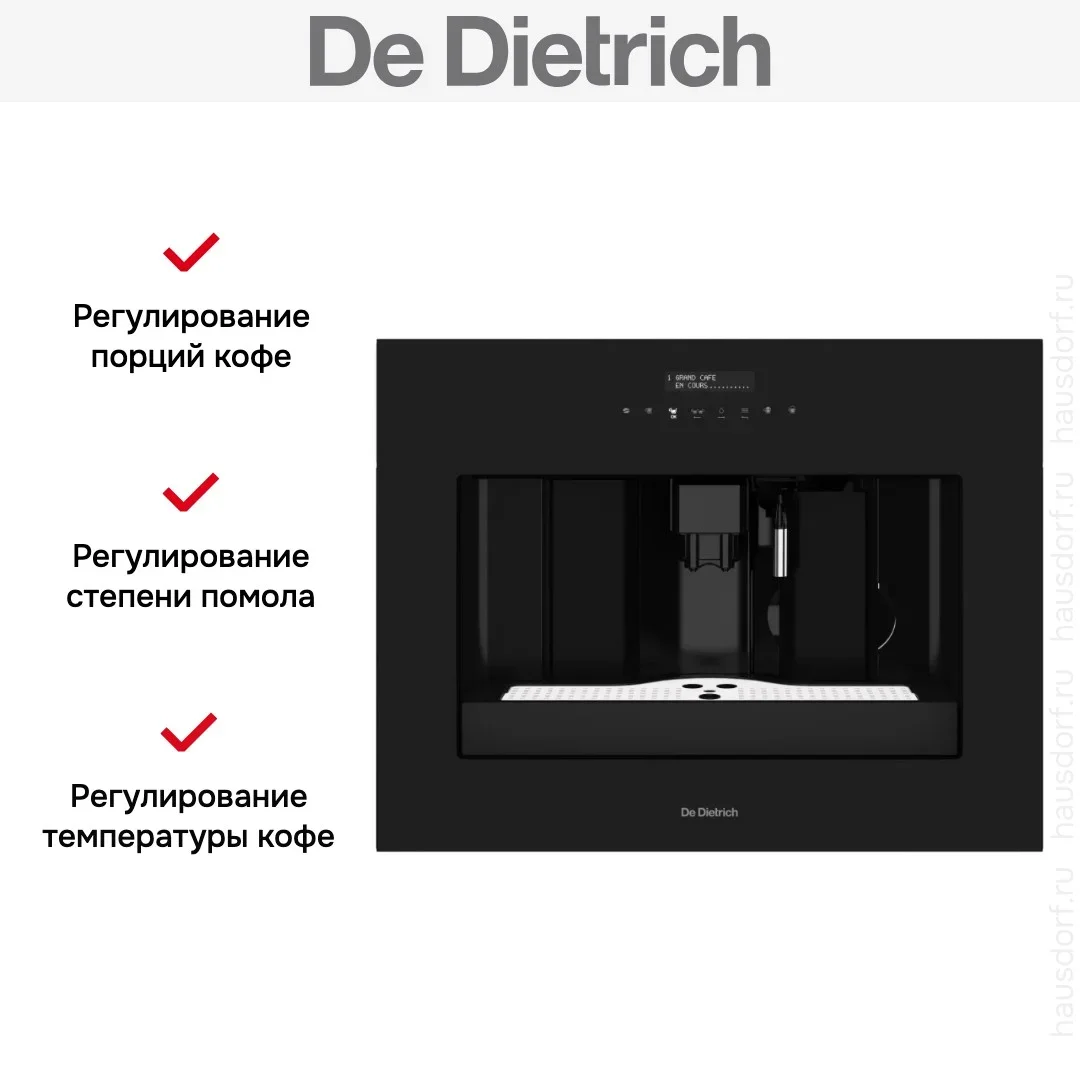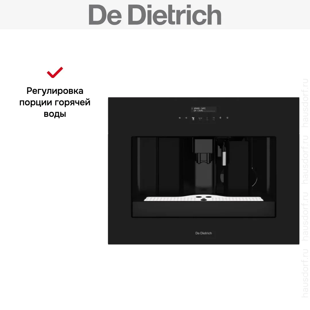 Встраиваемая кофемашина De Dietrich DKD4810N — это изысканное сочетание французского шарма, инженерной точности и современных технологий для приготовления кофе высочайшего качества. Устройство идеально вписывается в кухонный гарнитур, сохраняя эстетическую целостность интерьера благодаря лаконичному дизайну и безупречной отделке. Аппарат оснащён встроенной кофемолкой с керамическими жерновами и многоступенчатой регулировкой степени помола, что позволяет точно адаптировать текстуру зёрен под любой тип напитка — от насыщенного ристретто до мягкого лунго. Инновационная система заваривания обеспечивает стабильное давление и оптимальную температуру воды на протяжении всего цикла экстракции, раскрывая полноту вкуса и ароматическую сложность кофе. Цветной сенсорный дисплей с интуитивным интерфейсом предоставляет доступ к широкой библиотеке рецептов, включая эспрессо, американо, капучино, латте и авторские композиции. Автоматический молочный блок с функцией самоочистки гарантирует гигиеничность и стабильное качество пены без ручного вмешательства. Вместительный контейнер для зёрен (500 г) и резервуар для воды (2,5 л) обеспечивают длительную автономную работу даже при интенсивном использовании. Регулируемый по высоте диспенсер подстраивается под посуду любого формата — от компактных чашек до высоких бокалов. Система автоматической декальцинации, индикация уровня воды и напоминания о техническом обслуживании значительно упрощают уход. Встроенная зона подогрева чашек поддерживает оптимальную температуру посуды, усиливая вкусовую глубину и ароматическую насыщенность готового напитка. Низкий уровень шума при помоле и заваривании делает эксплуатацию комфортной в любое время суток. Эта модель — выбор для тех, кто ценит утончённый дизайн, интеллектуальную автоматизацию и профессиональный результат в каждой чашке.